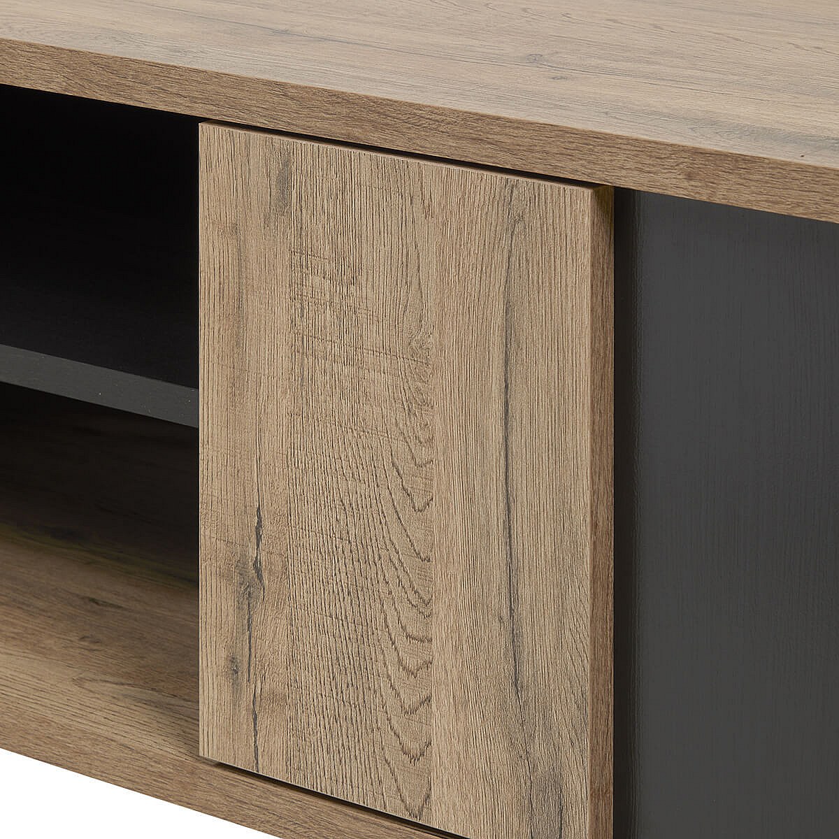 Meuble TV 2 Portes Effet Bois Naturel et Noir de la gamme Carson.