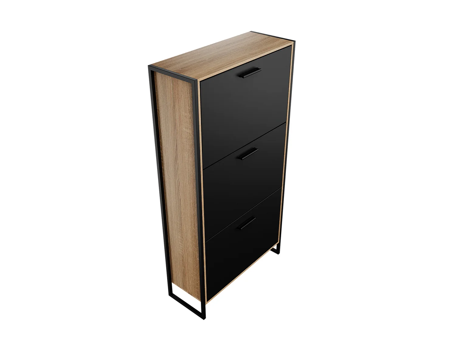CASABEL Meuble A Chaussure Industriel 18 Paires, Pour Entrée, Couloir - Noir Bois Clair