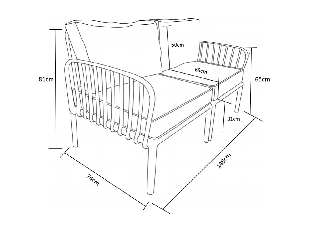 Salon de jardin en polypropylène : 1 canapé 2 places et une table basse - Anthracite - CASILMA de MYLIA