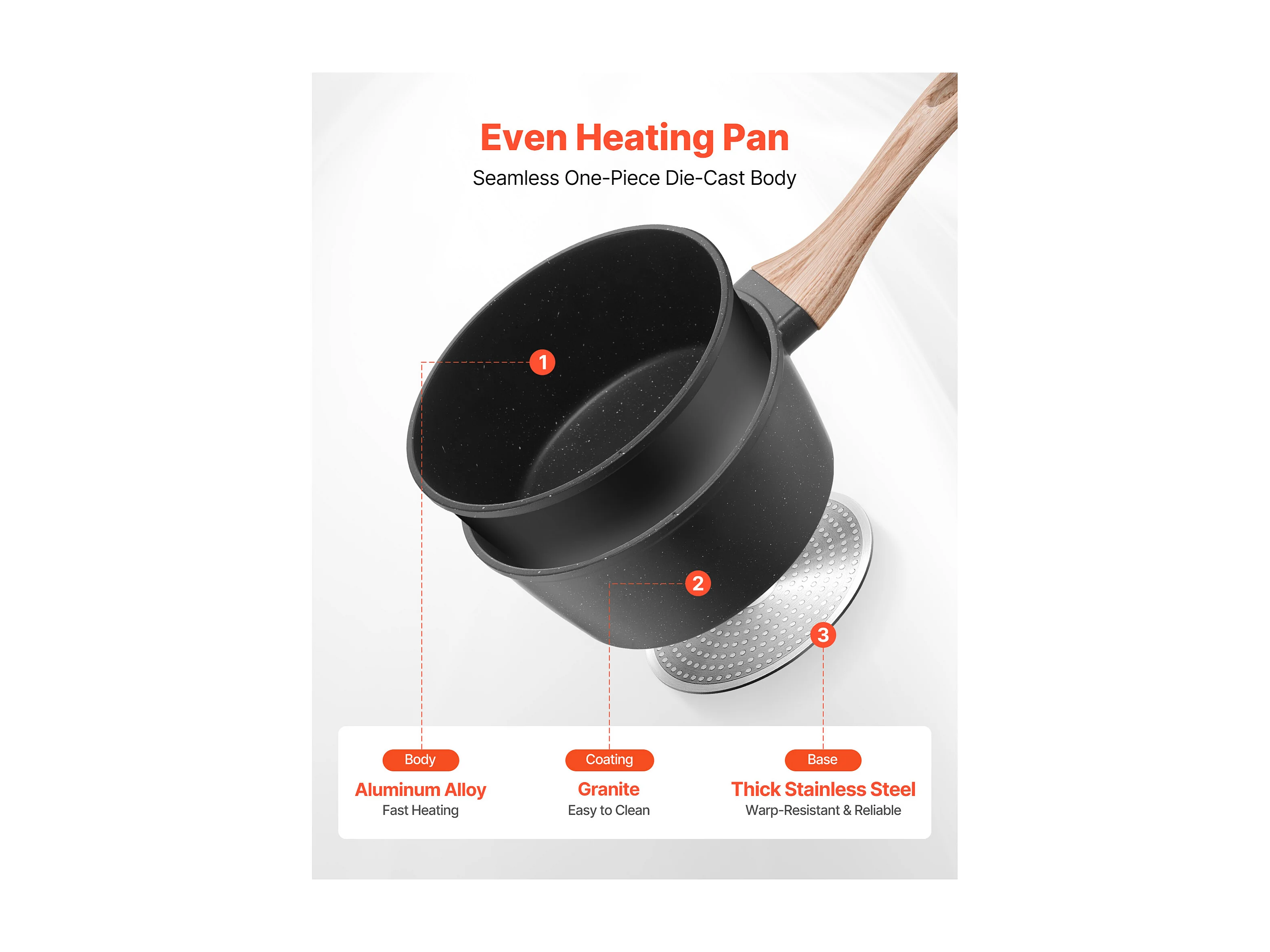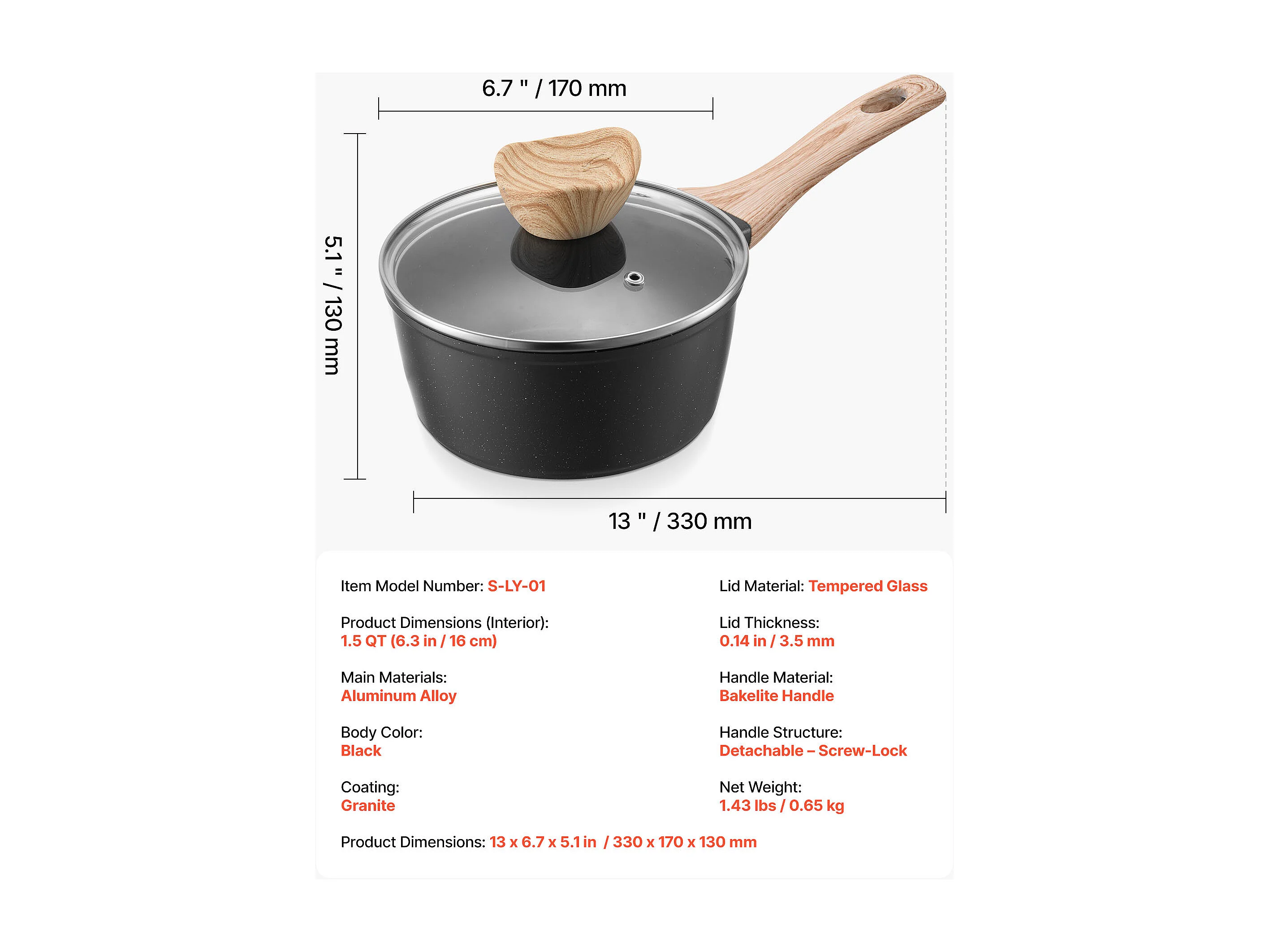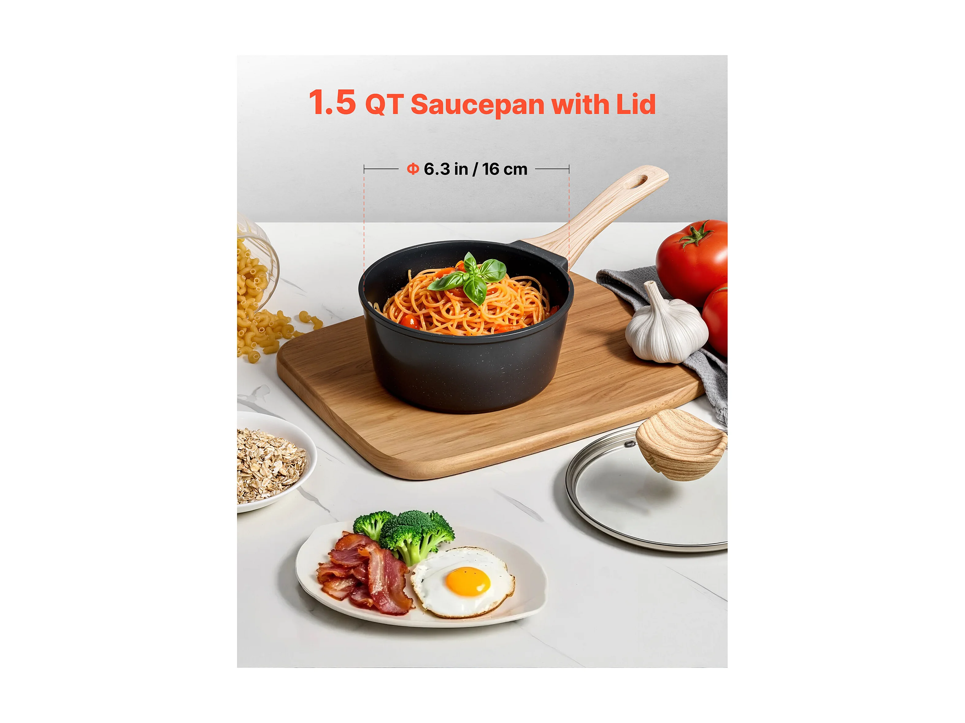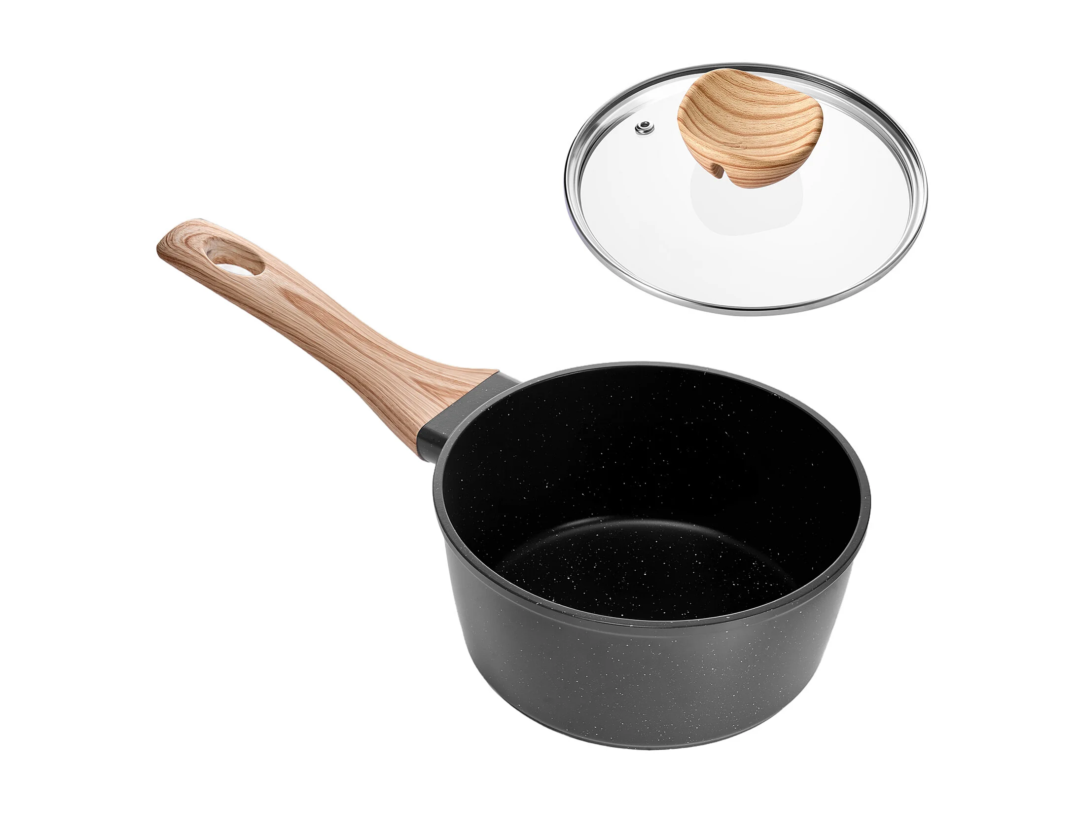 Casserole SucceBuy de 1,4 L, Poêlon avec Revêtement Antiadhésif, Couvercle en Verre Trempé Et Poignée Amovible, Multifonctions, Marmite Compatible avec Cuisine