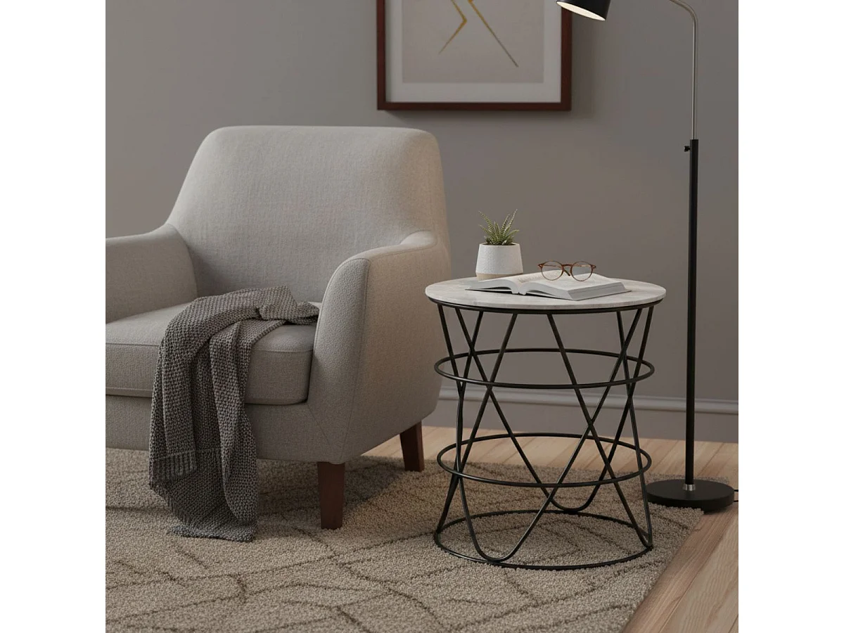 CATHLEEN - Bout de Canapé Rond Plateau Céramique