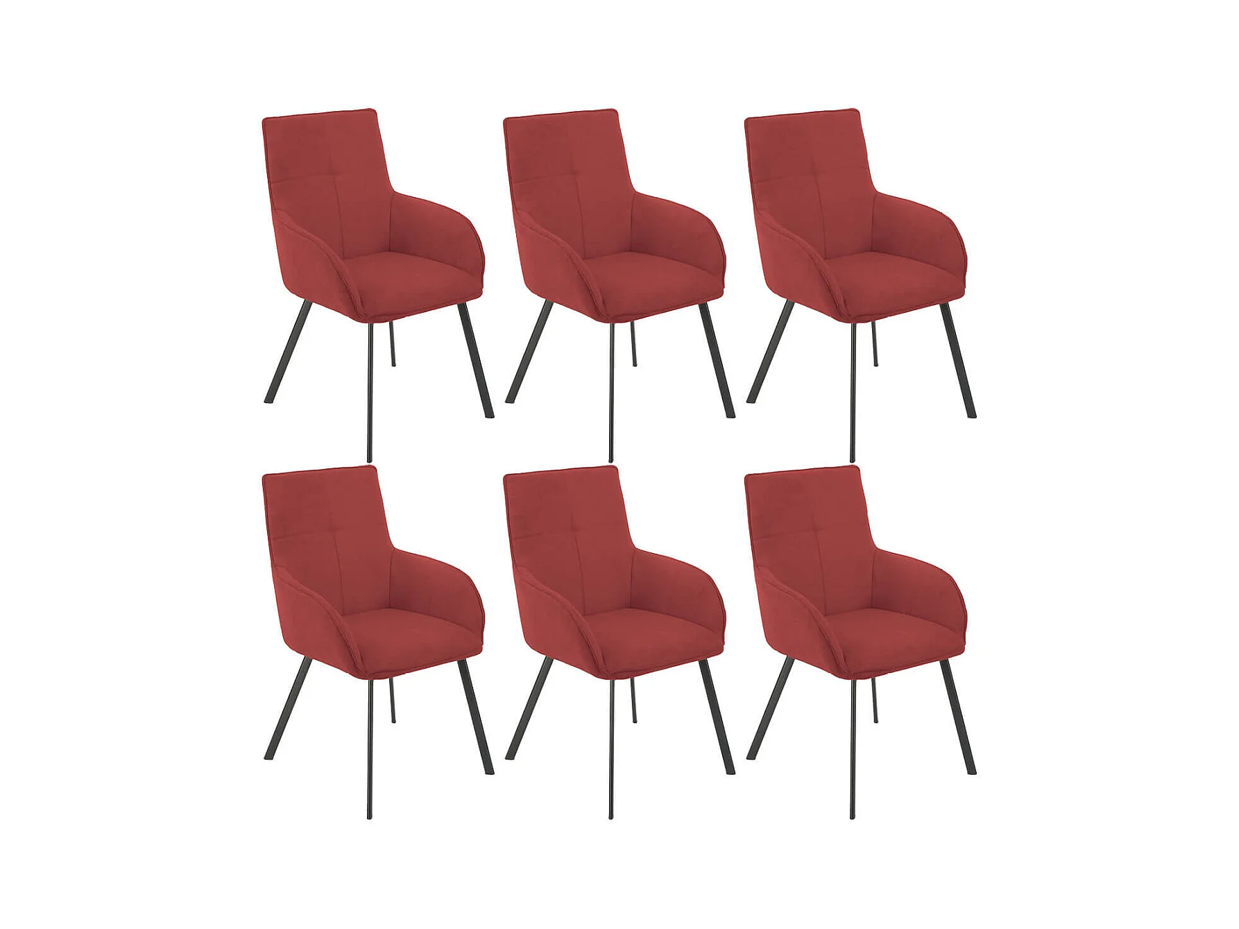 CATILA - Lot de 6 Fauteuils Rouges Piètement Gris Mat