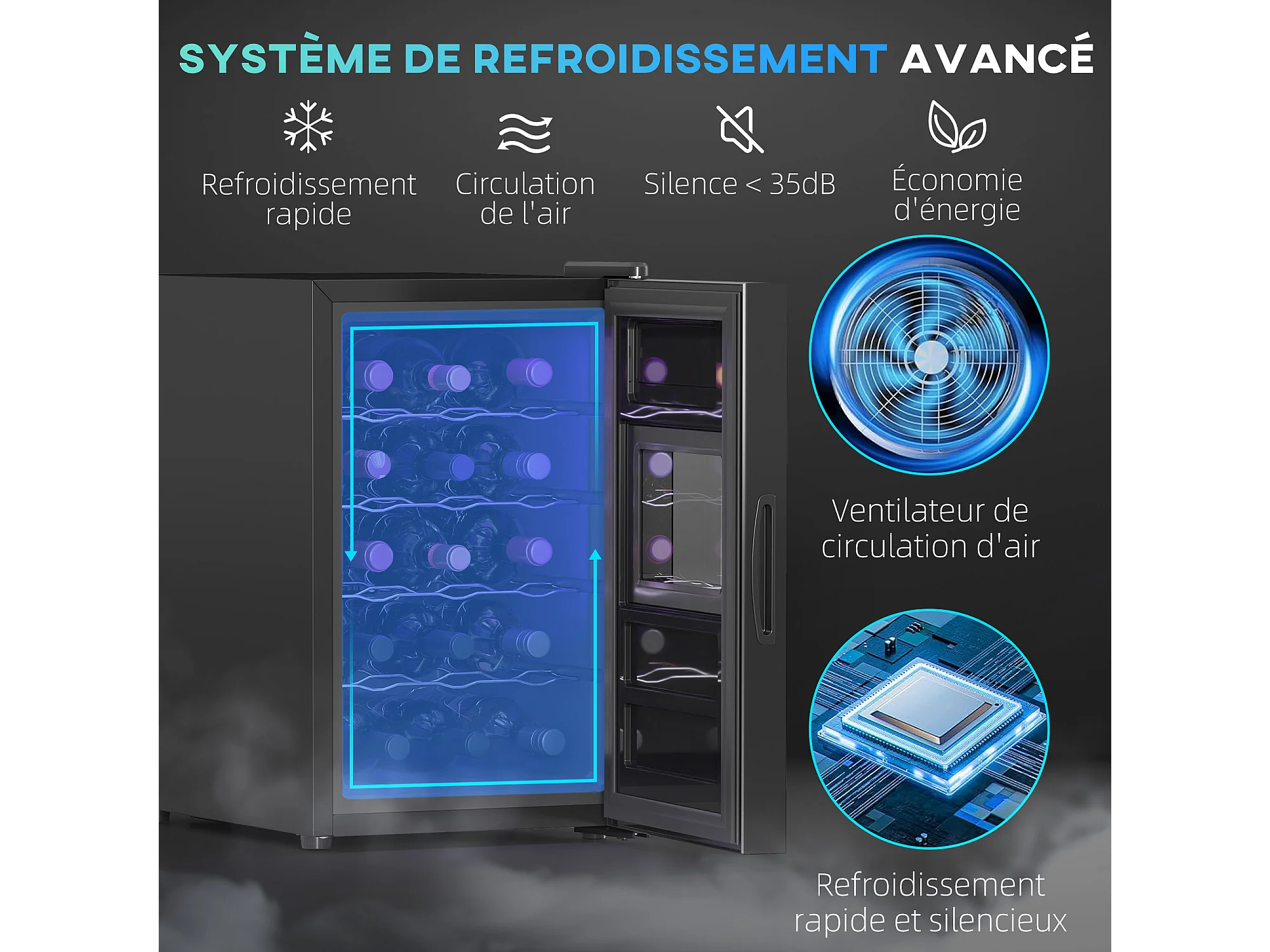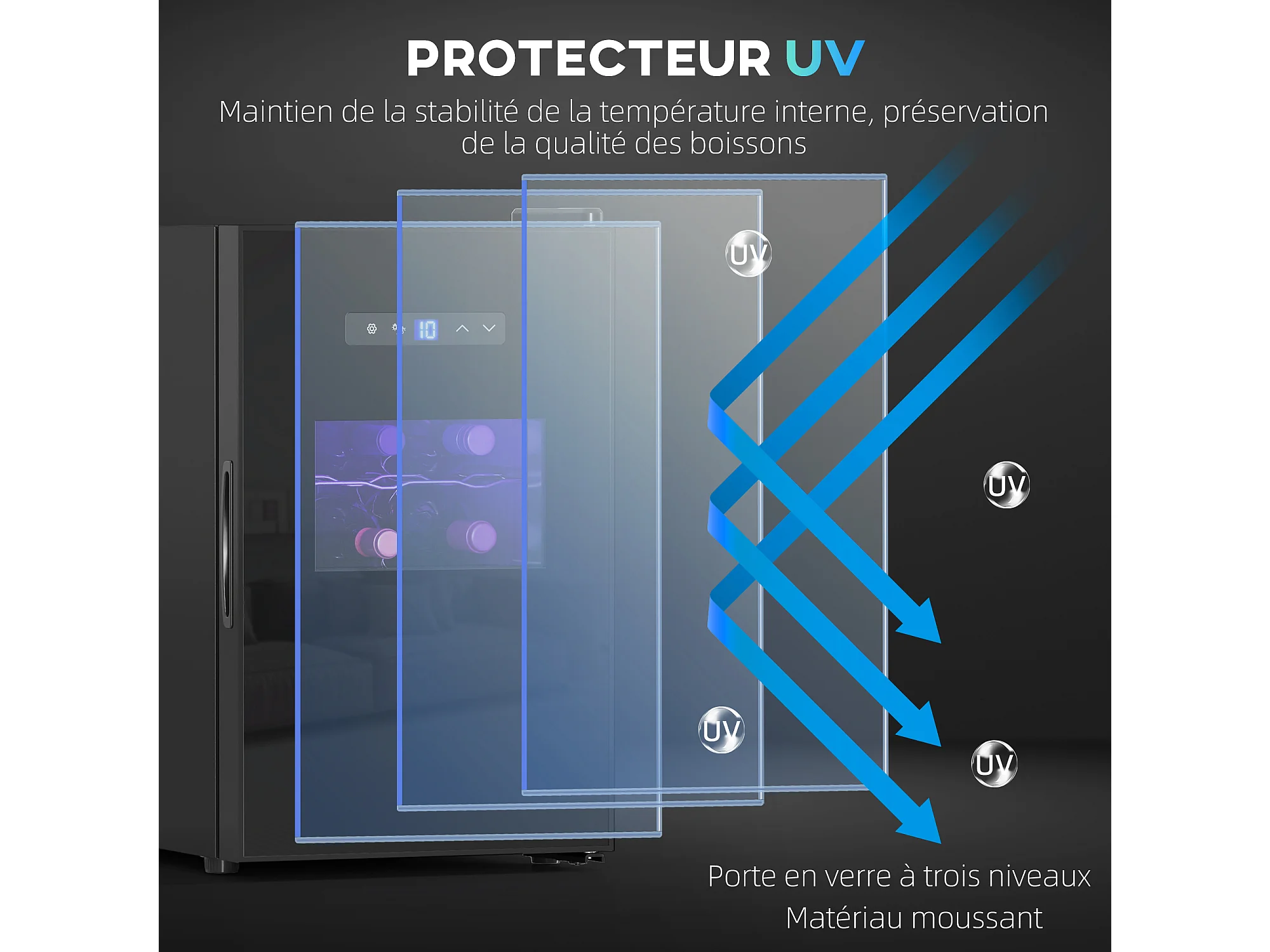 Cave à vin 15 bouteilles 39L T.5-18°C éclairage LED écran tactile numérique porte verre anti-UV noir