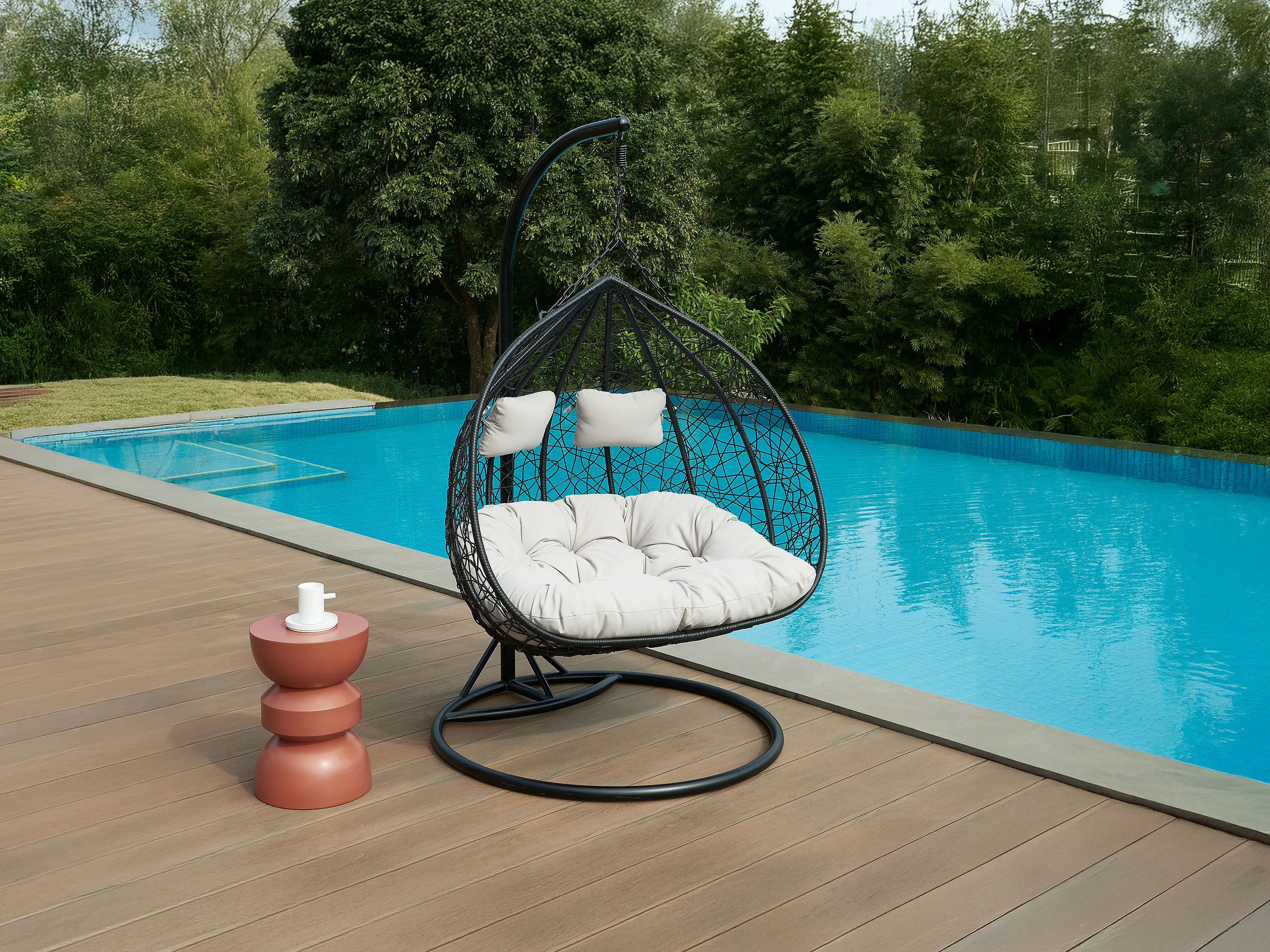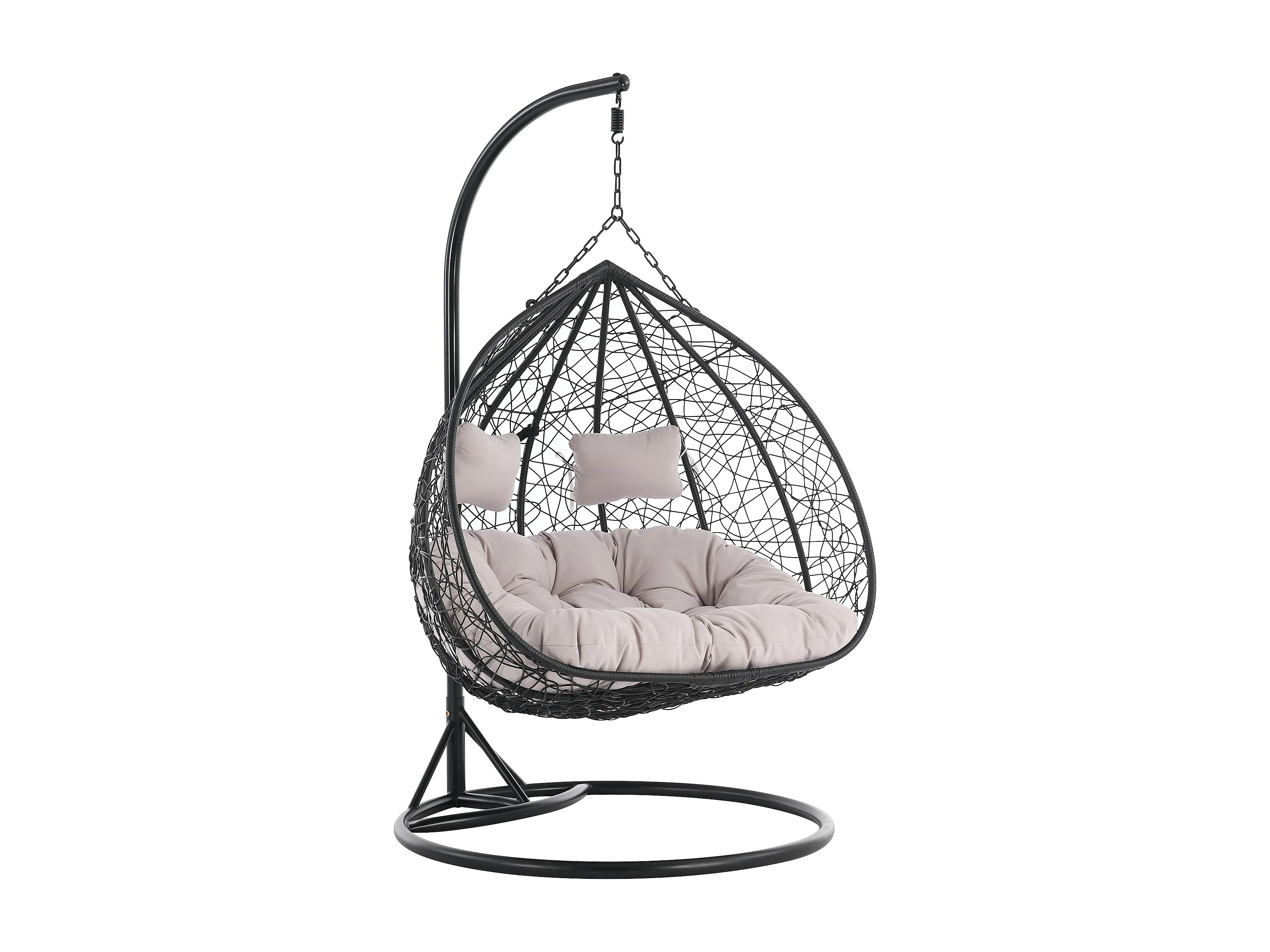 Fauteuil suspendu 2 places en résine tressée - Noir avec coussins gris - CAYAMBE de MYLIA