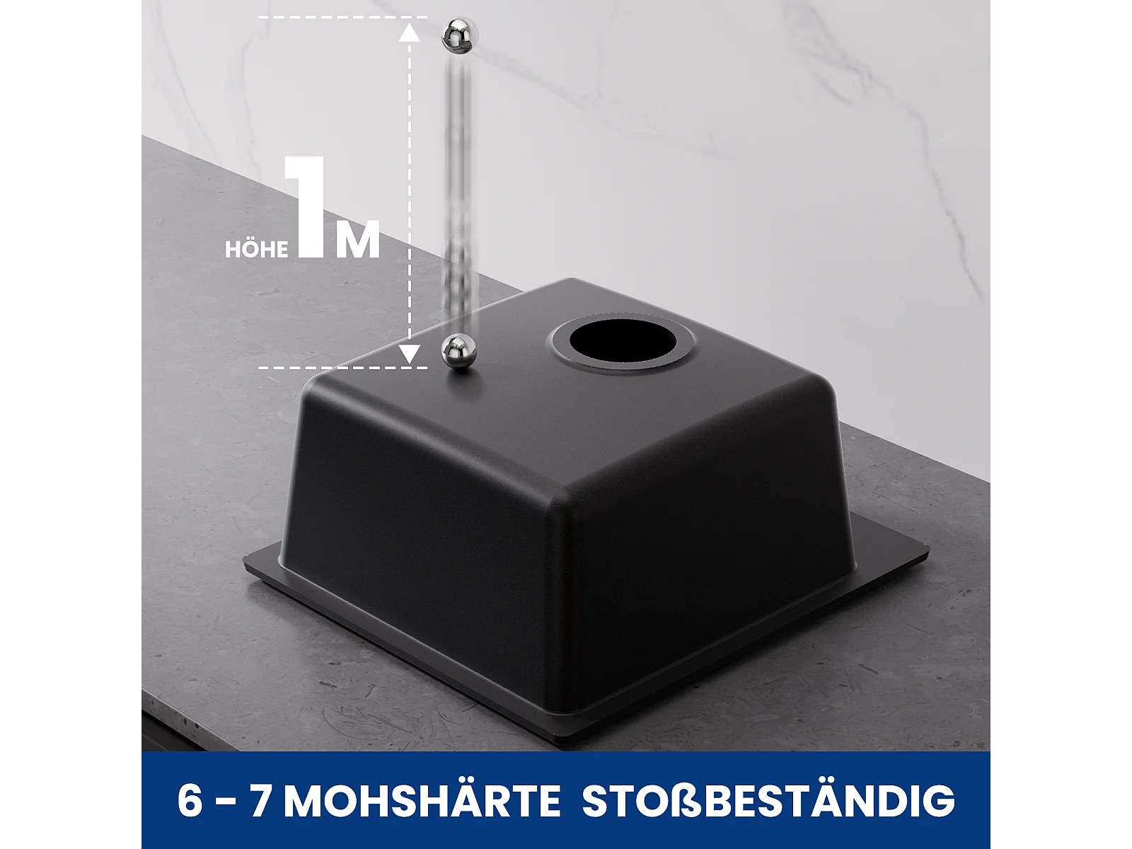 Cecipa max 40x45cm Evier de Cuisine en Quartz et Résine Evier Quartz 1 Bac Noir + Cuisine Rabattable Robinet Pliable Mitigeur Sous Fenêtre Noir