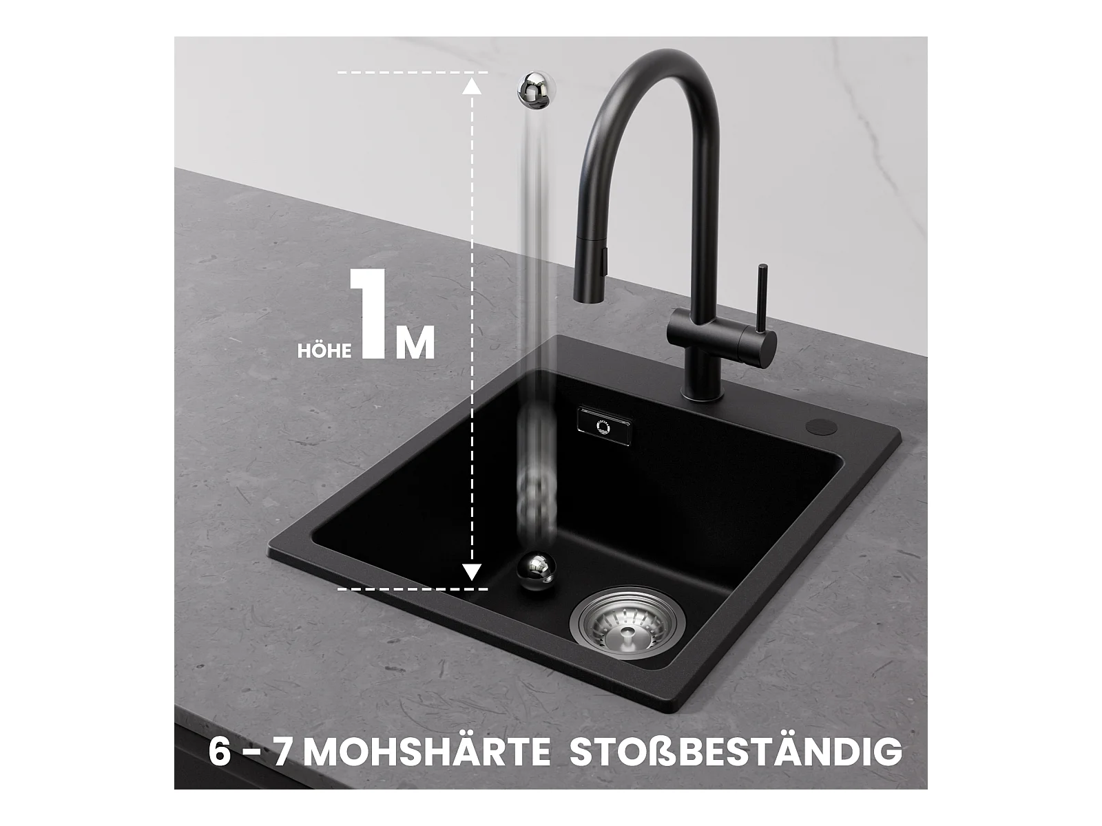 Cecipa max 40x45cm Evier de Cuisine en Quartz et Résine Evier Quartz 1 Bac Noir + Mitigeur avec Douchette Extractible - 2 Modes de Sortie D'eau