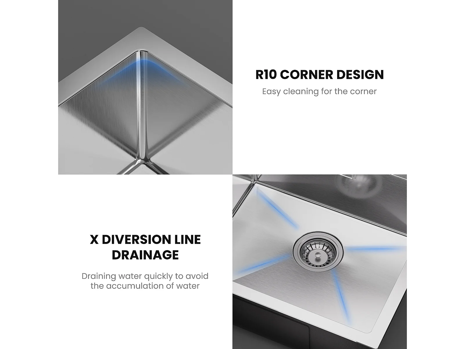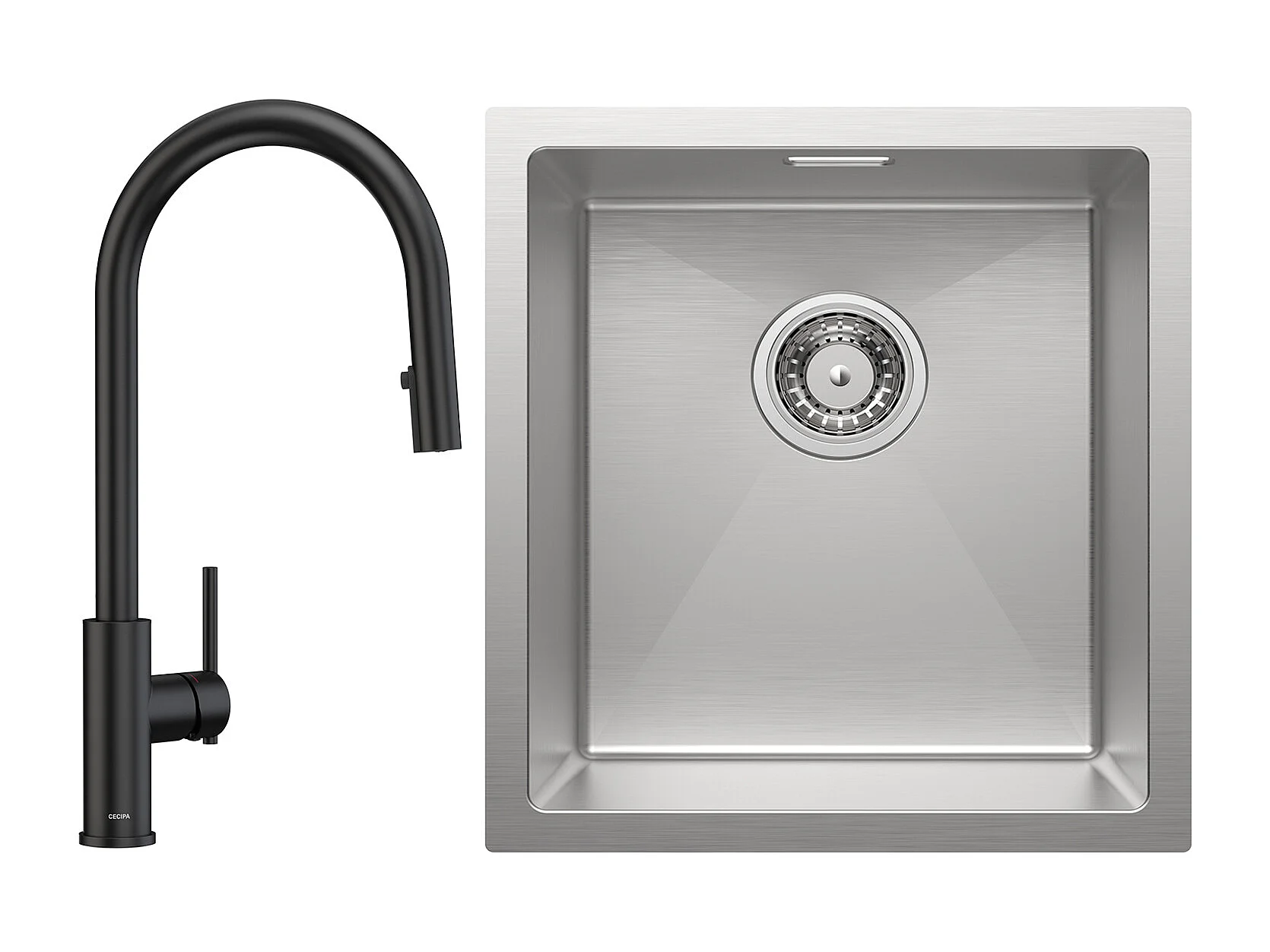 CECIPA MAX Évier 1 Bac 50*44cm Évier de Cuisine en Inox Brossé + Mitigeur de Cuisine Avec Douchette Extractible, 2 Modes de Sortie D'eau, Noir