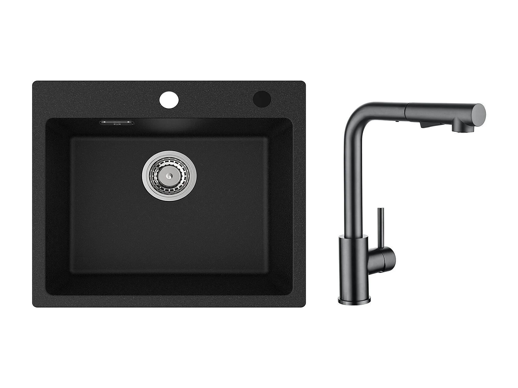 Cecipa MAX Evier 1 Bac 50x45cm Evier en Quartz et Résine Evier à Encastrer + Mitigeur Cuisine Avec Douchette Extractible