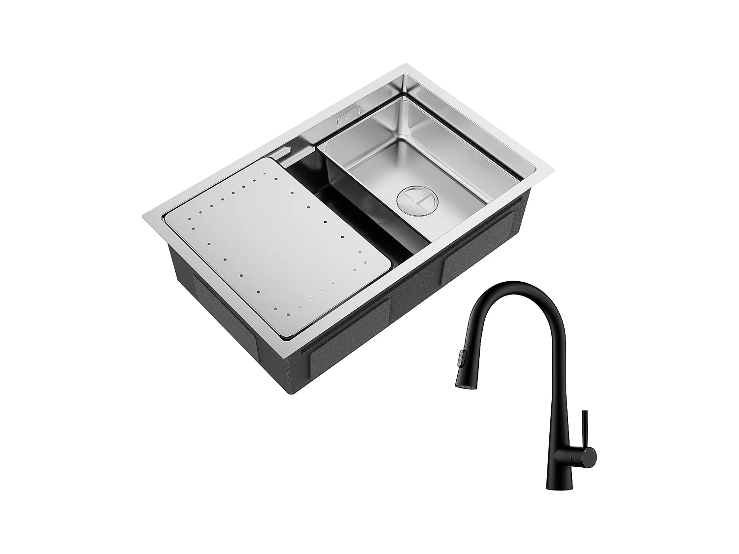 Cecipa max Évier 1 Bac 70×44cm Évier à Encastrer Inox Brossé avec Egouttoir et Vasque + Mitigeur avec Douchette Extractible, 3 Modes de Sortie D'eau