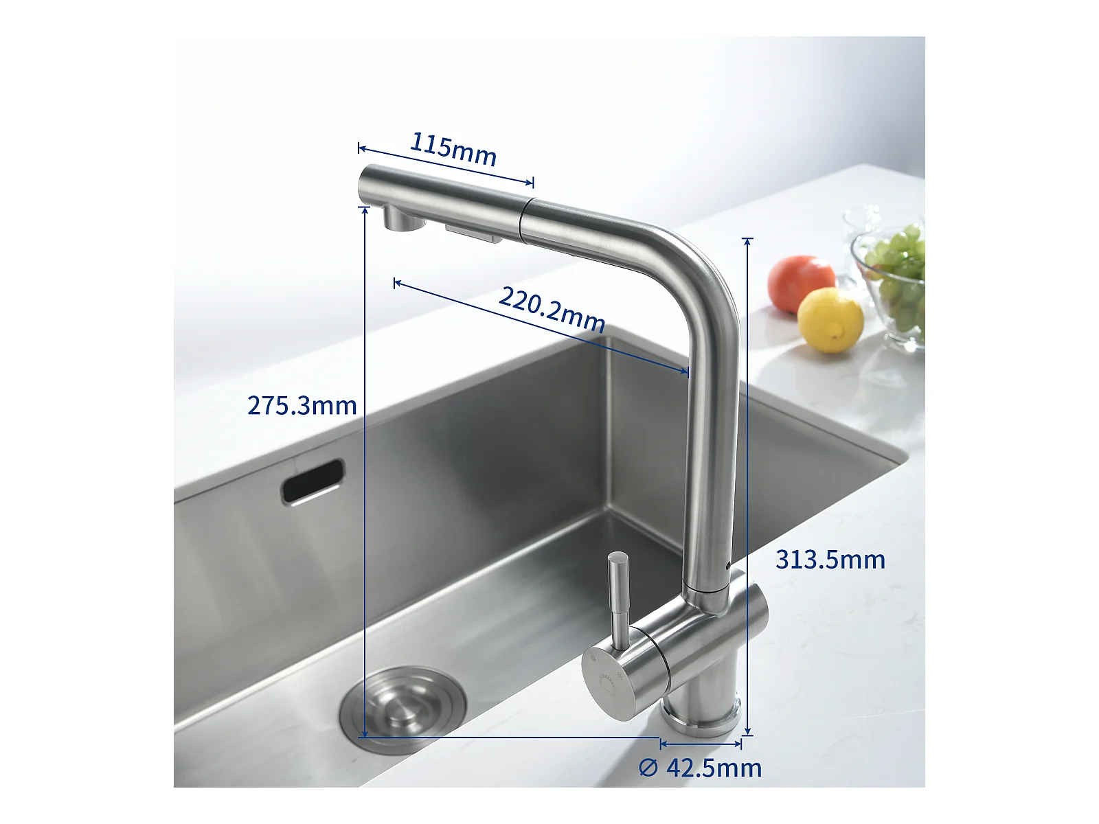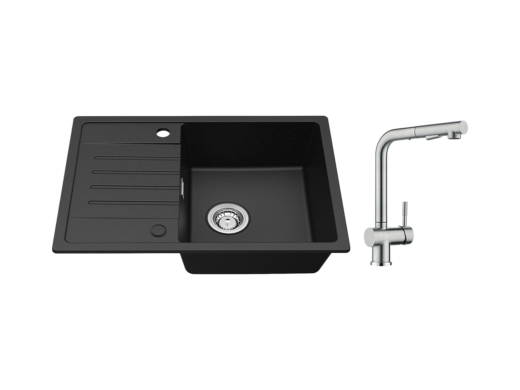 Cecipa max Evier 1 Bac avec Egouttoir Evier à encastrer Quartz et résine Noir 65x45cm + Robinet avec Douchette Mitigeur d'évier Extractible Brossé
