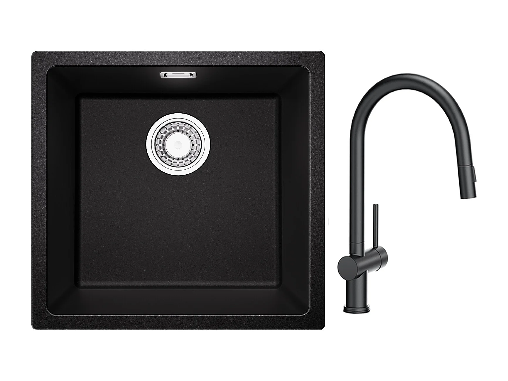 CECIPA MAX Evier 1 Bac en Quartz et Résine Noir Gris 45*44*20cm + Mitigeur de Cuisine avec Douchette Extractible avec 2 Types de Jet