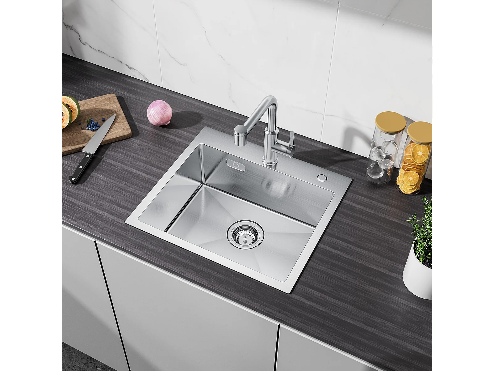 Cecipa max Évier de Cuisine 1 Bac, Évier de Cuisine 50 x 45 x 18,5 cm, Évier de Cuisine Carré Inoxydable Brossé,EU Modèle
