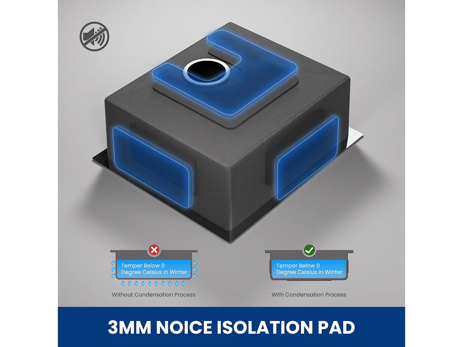 CECIPA MAX Évier de Cuisine 1 Bac Brossé Évier Inox 50*44CM + Mitigeur Evier à 3 Voies, 2 Leviers, Noir