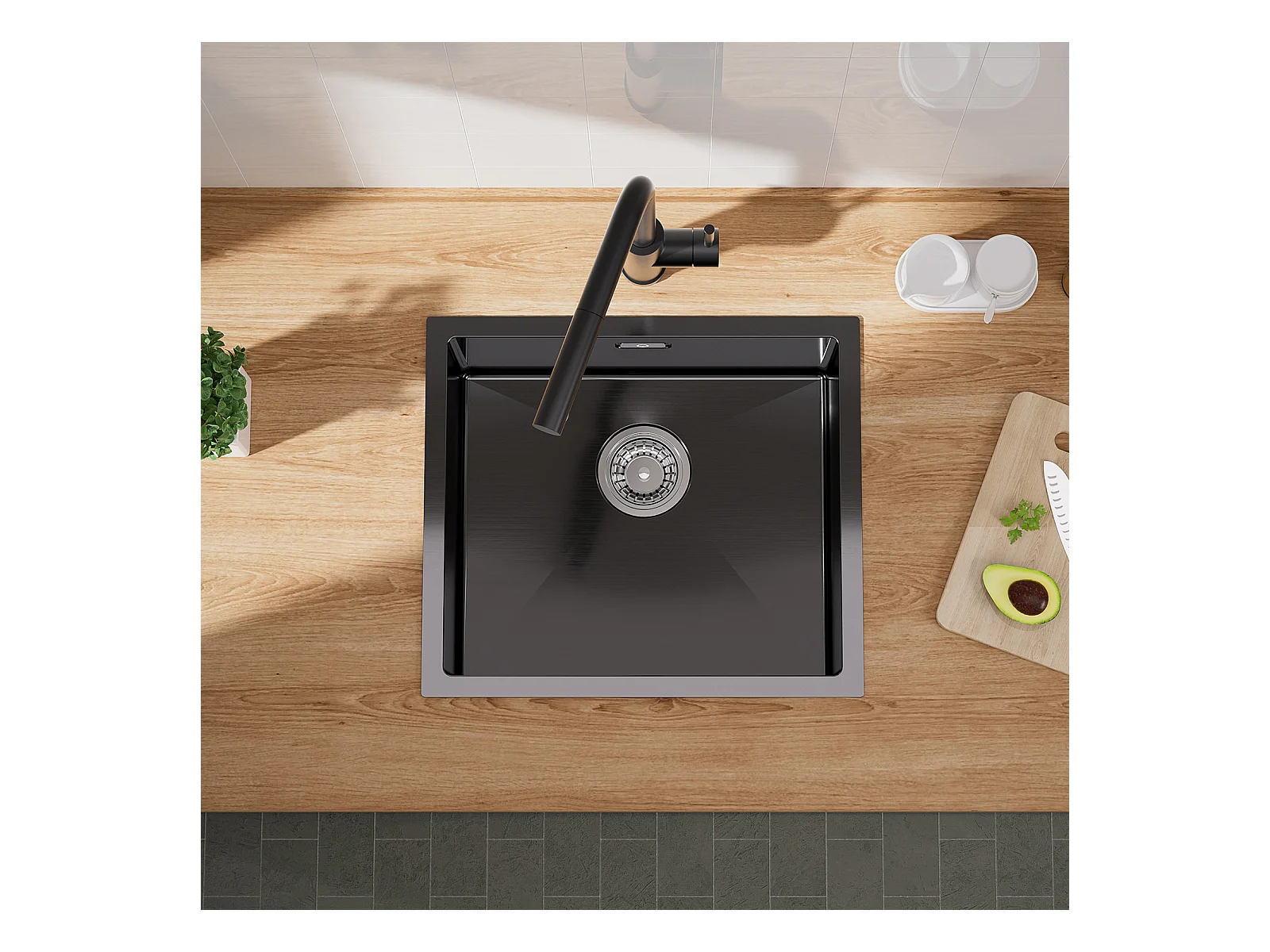 CECIPA MAX Évier de Cuisine 1 Bac Évier Inox 50*44CM Noir Anthracite + Robinet de Cuisine à eau Froide,Noir