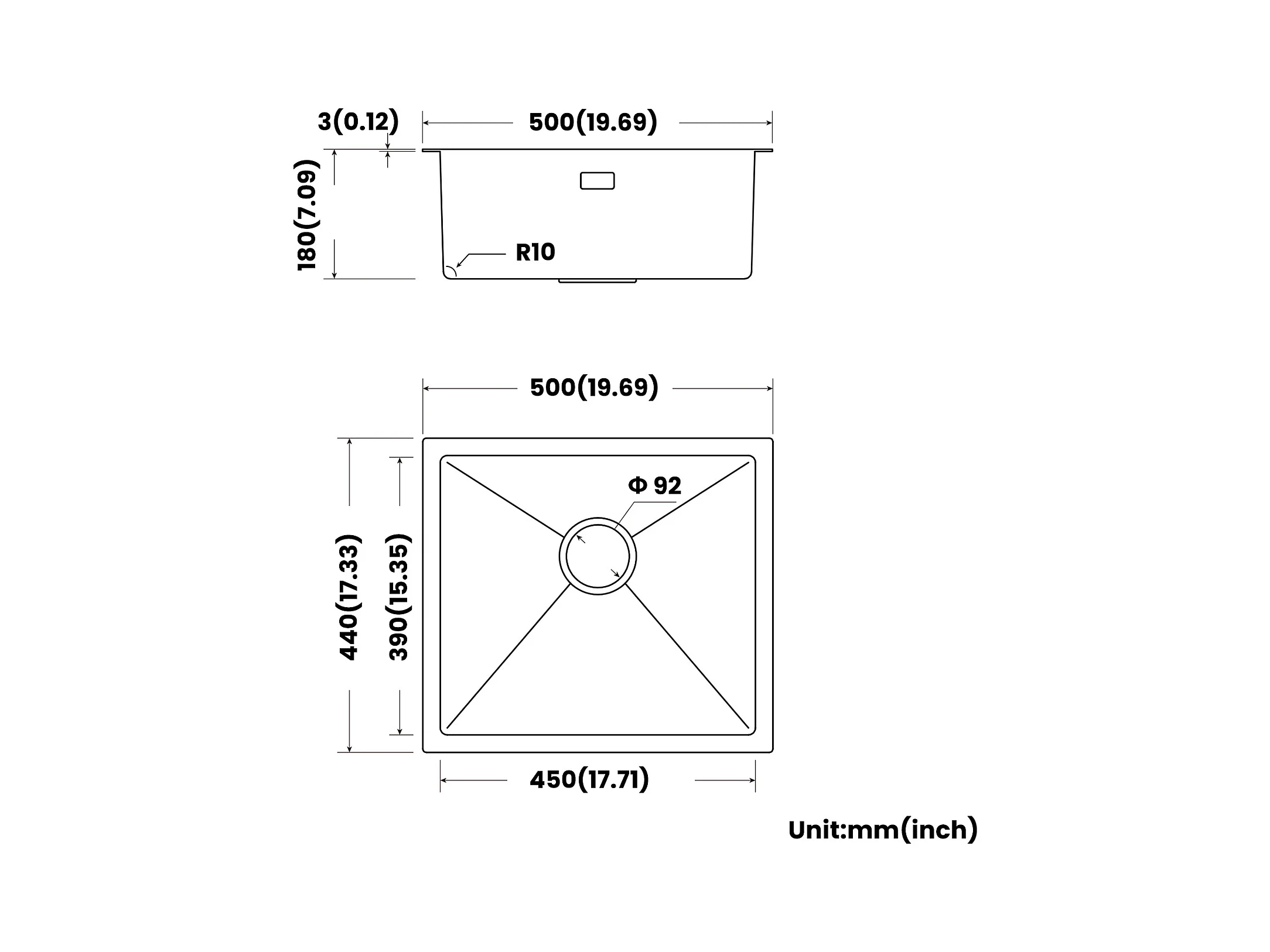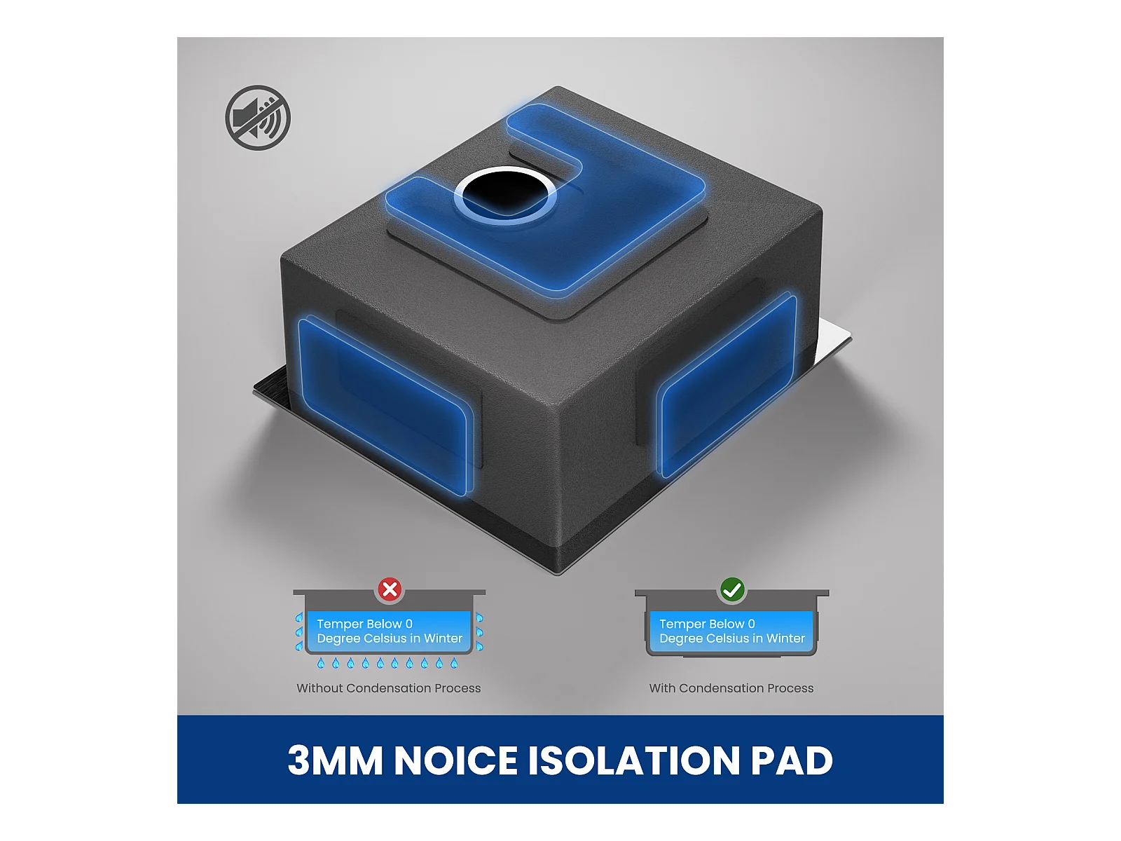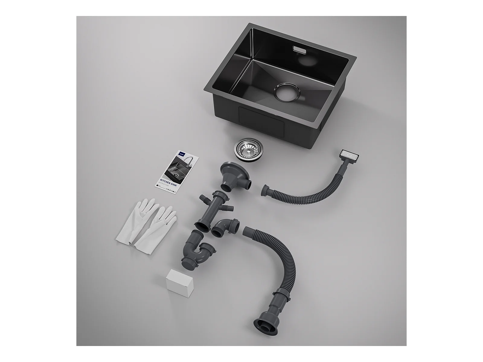 CECIPA MAX Évier de Cuisine 1 Bac Évier Inox 50*44CM Noir Anthracite + Mitigeur Cuisine pour Sstème D'osmose
