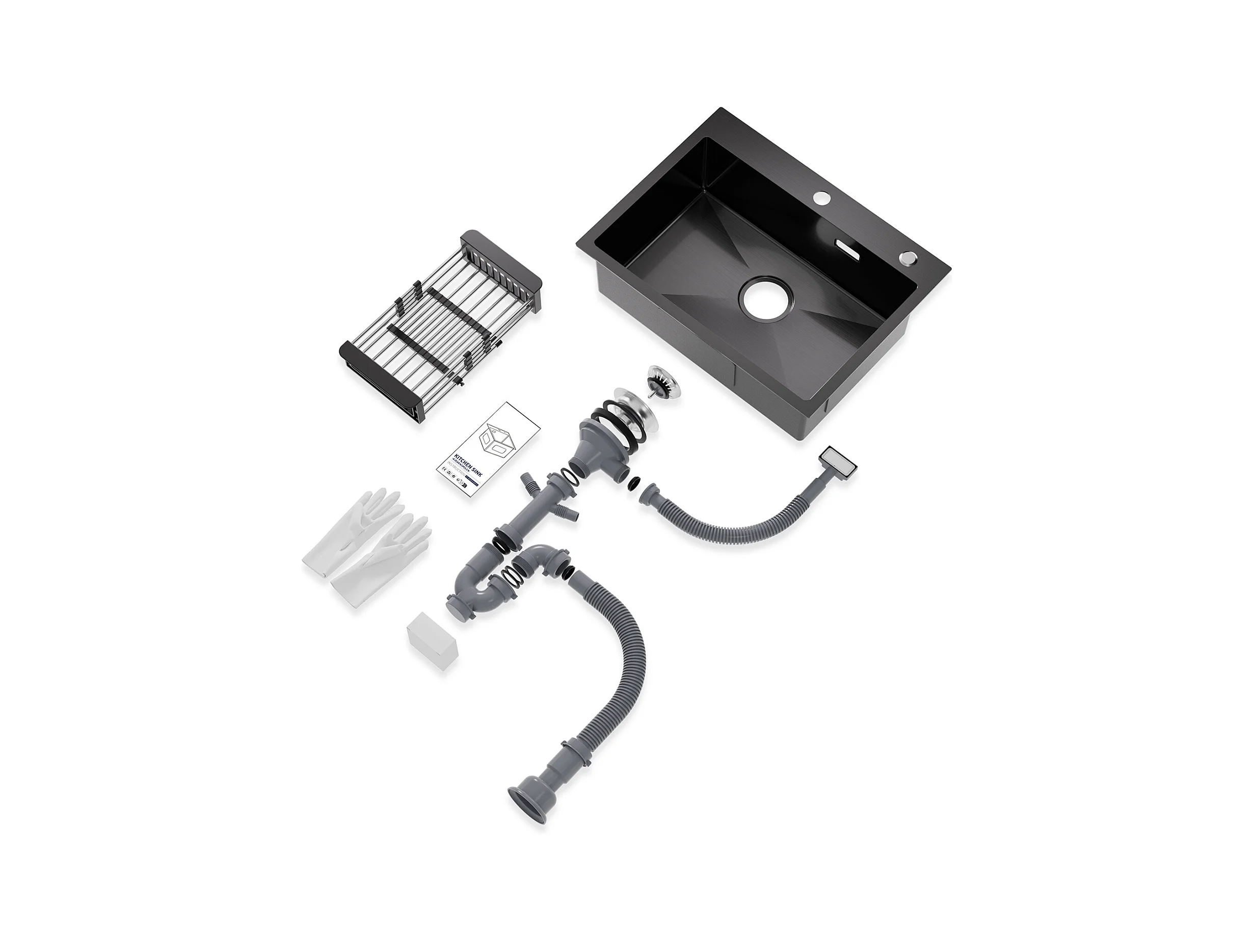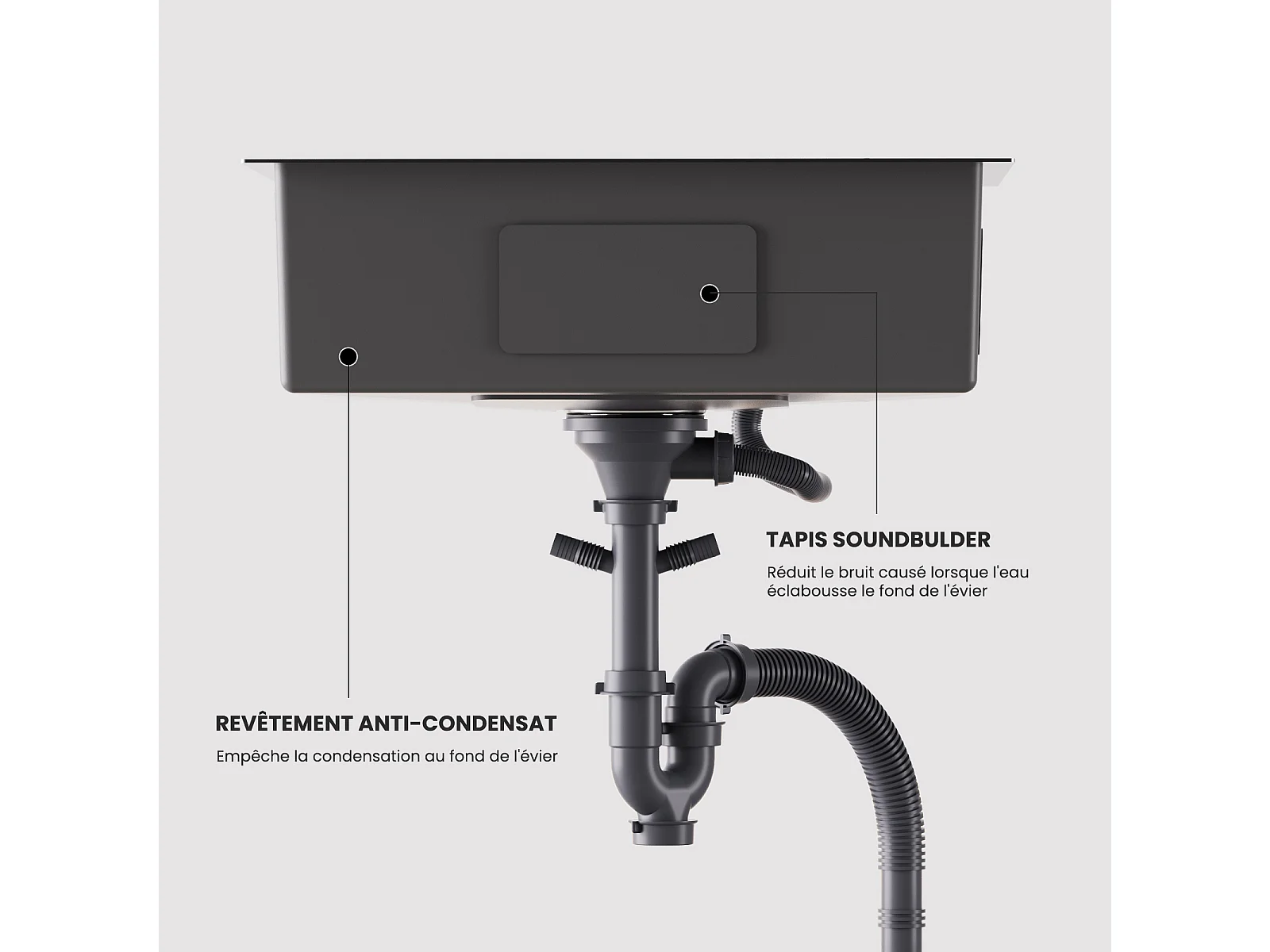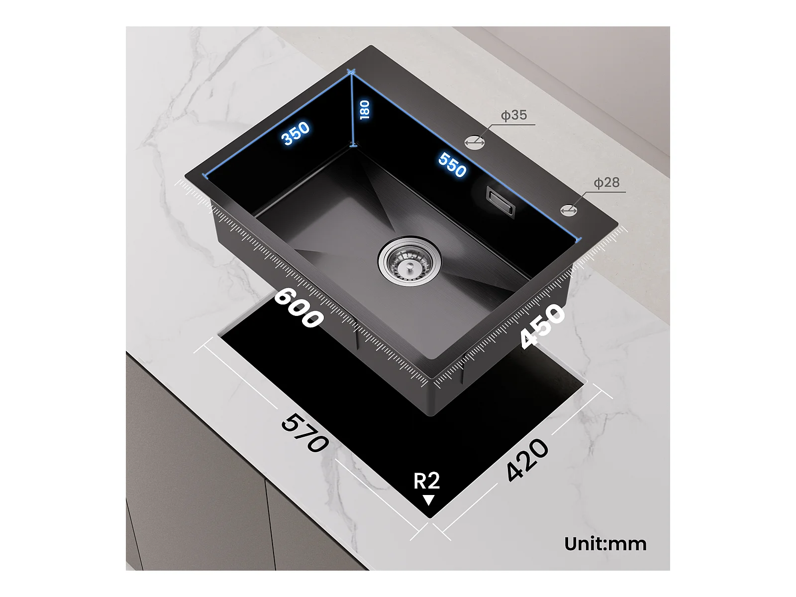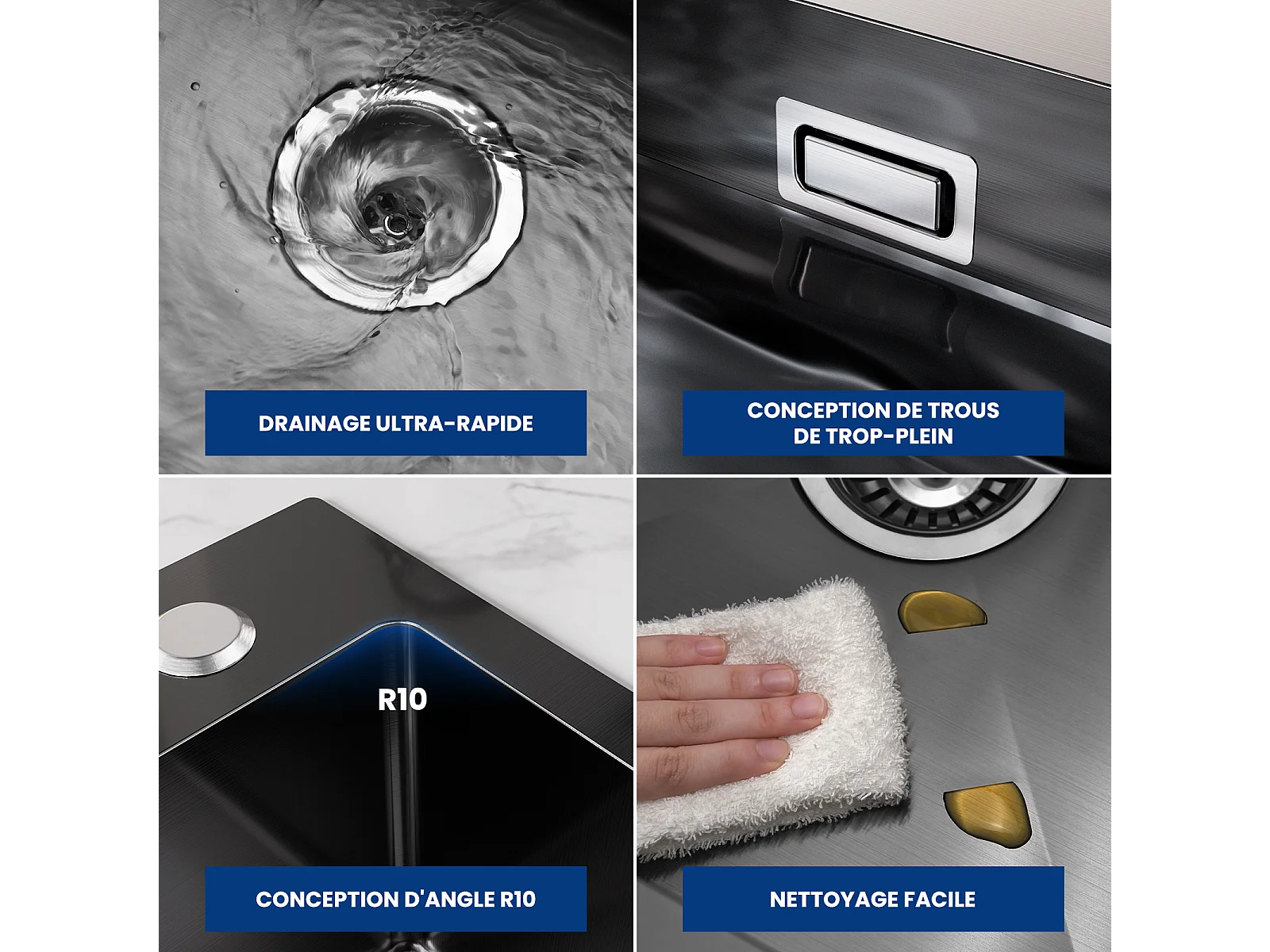 Cecipa max Évier de Cuisine 1 Cuve Inox 60×45×18 cm - Noir Évier 1 Bac avec Panier de Drainage - Évier de Cuisine Grande Capacité,EU Modèle