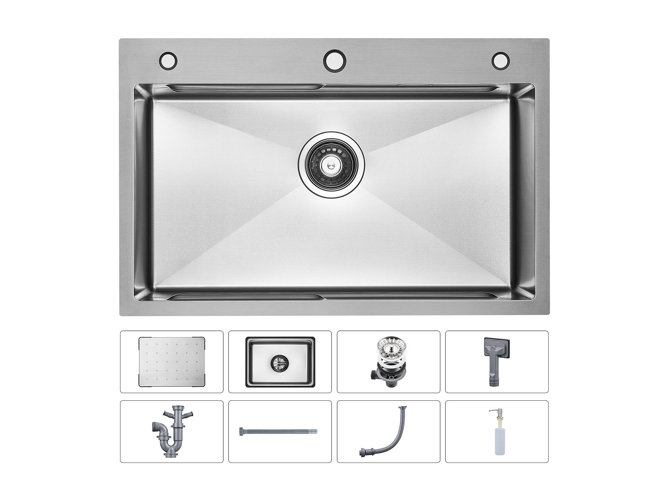 Cecipa max Évier Inox 70×45×21.5CM avec Egouttoir,Vasque et Distributeur de Savon + Robinet Cuisine avec Douchette Extractible, Mitigeur d'évier Noir