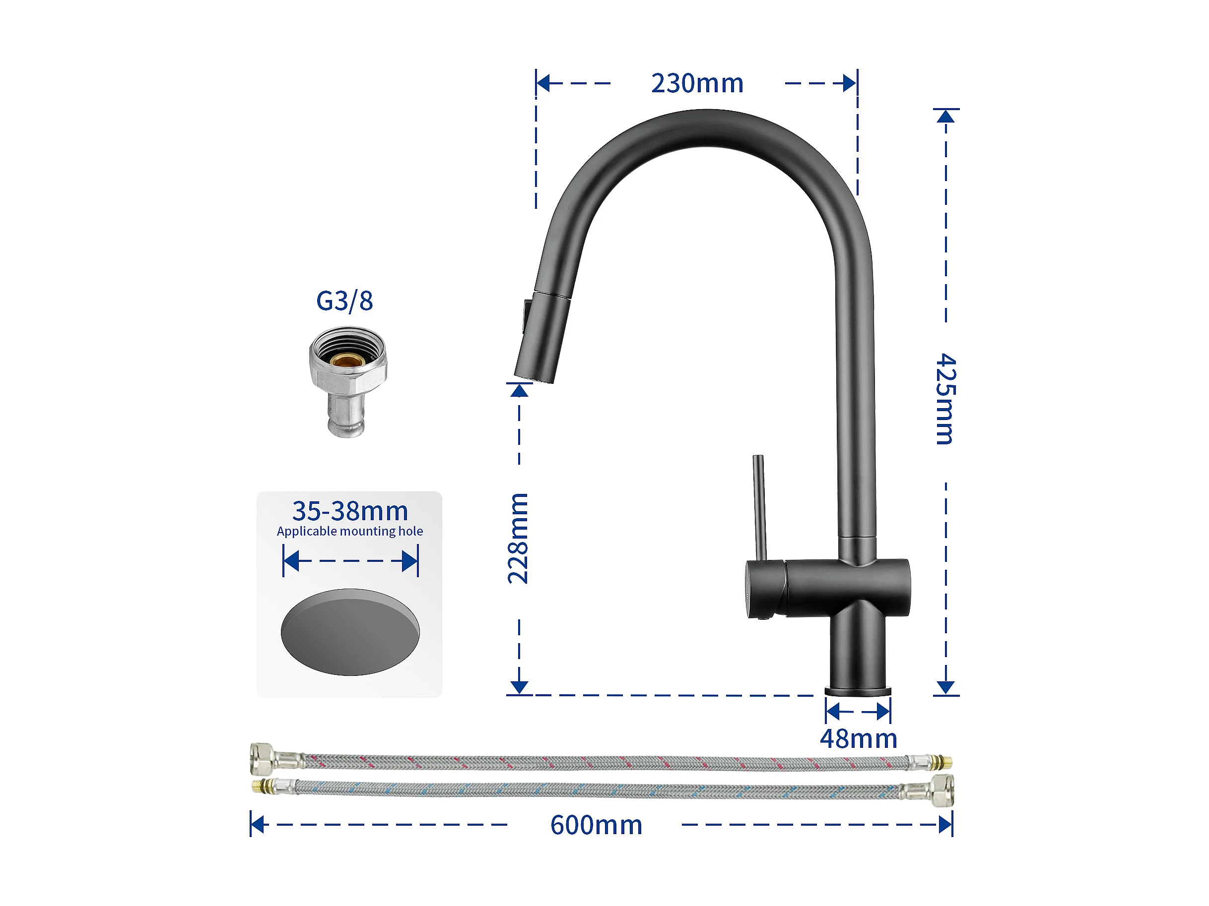 Cecipa max Évier Inox Encastré 40*44*19 cm - Évier de Cuisine 1 Bac Noir + Mitigeur de Cuisine avec Douchette Extractible avec 2 Types de Jet Noir