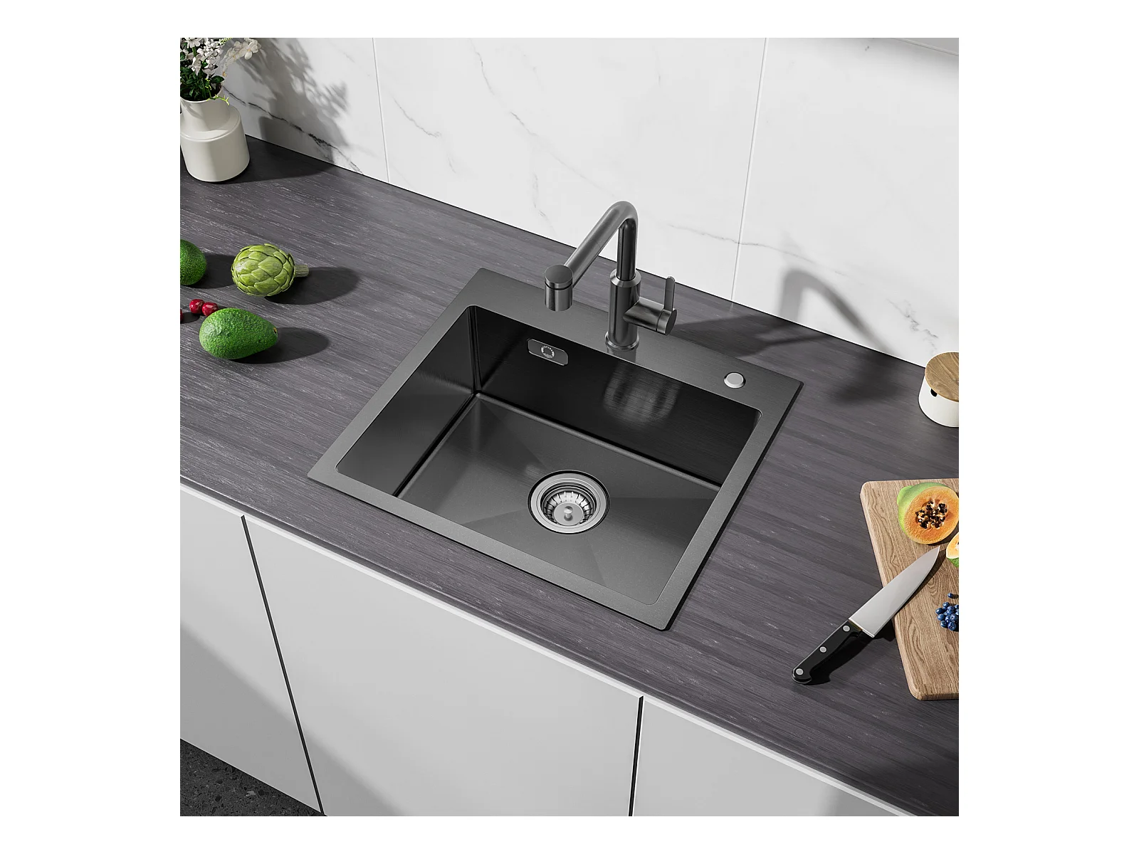 Cecipa max Évier Cuisine 1 Bac 50 × 45 cm Évier Inox Montage sur le Dessus/Montage à Plat Évier de Cuisine 201 Nanomètres Noir,EU Modèle
