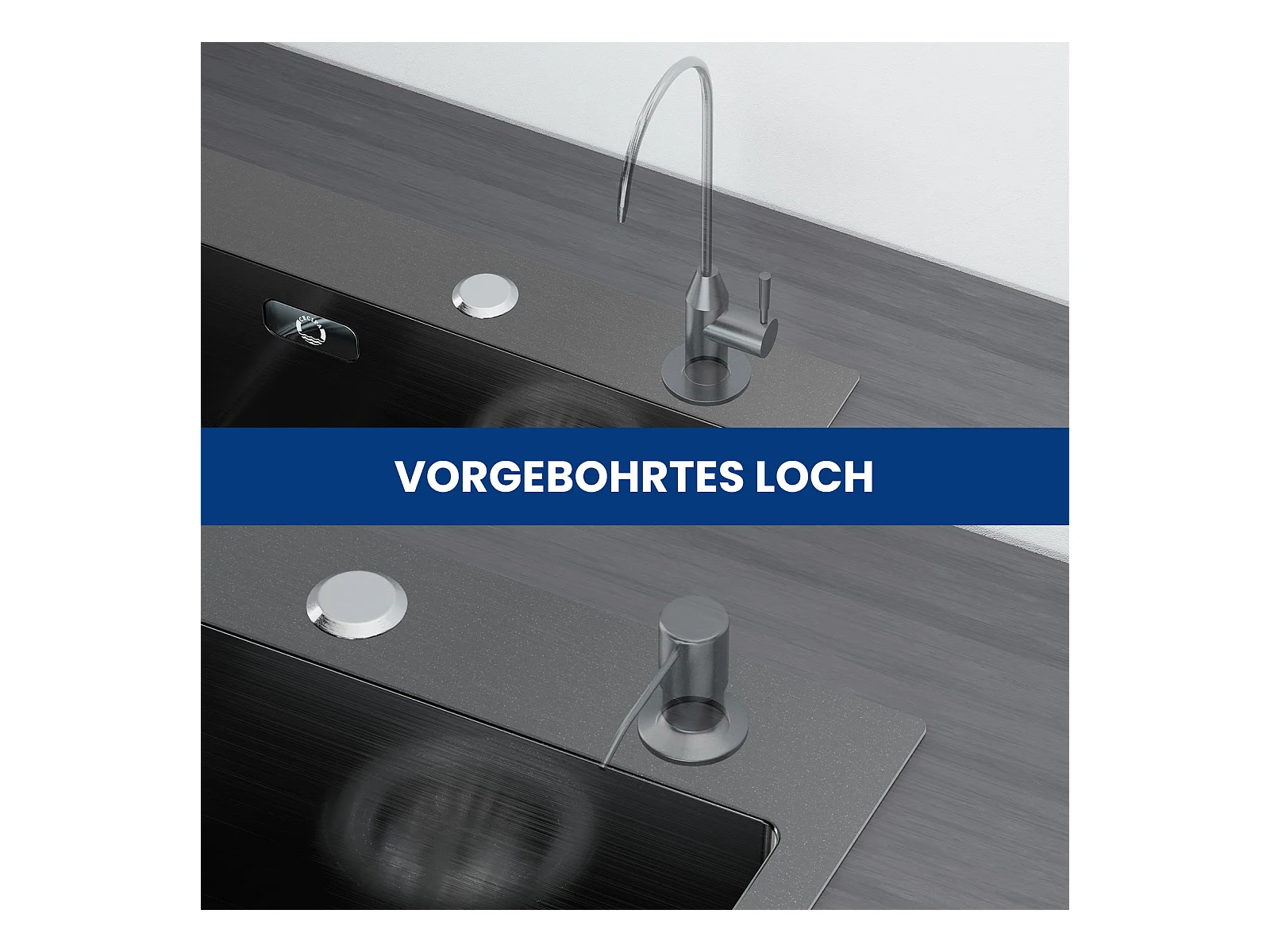 Cecipa max 2 en 1 Evier 1 bac 50*45*18.5cm Noir gris + Robinet de Cuisine Noir