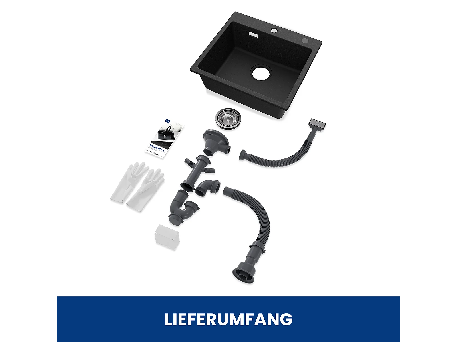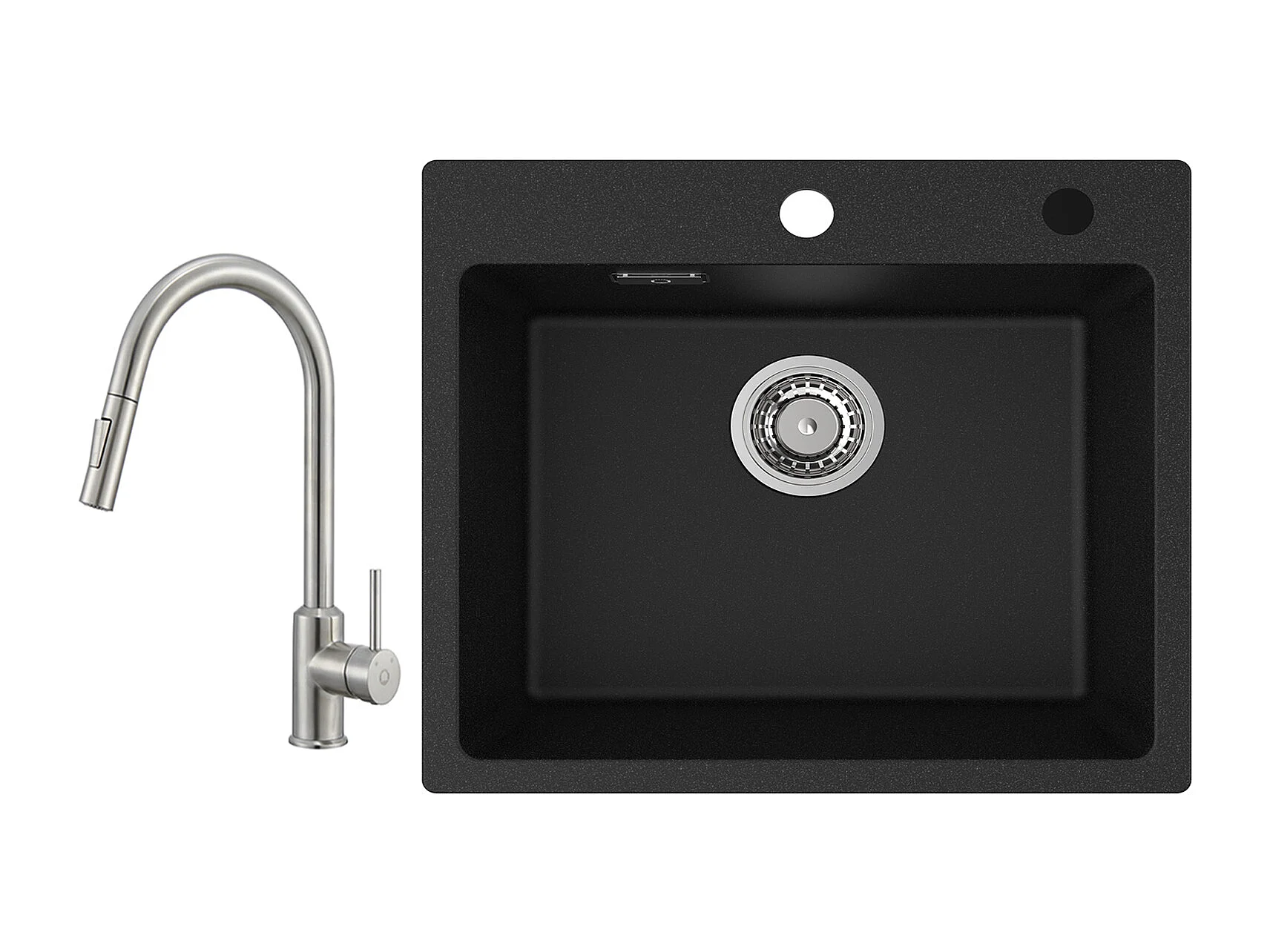 Cecipa max Evier Quartz Noir 50x45cm Evier 1 Bac en Quartz Evier de Cuisine en Granit + Mitigeur avec Douchette Extractible - 2 Modes de Sortie D'eau
