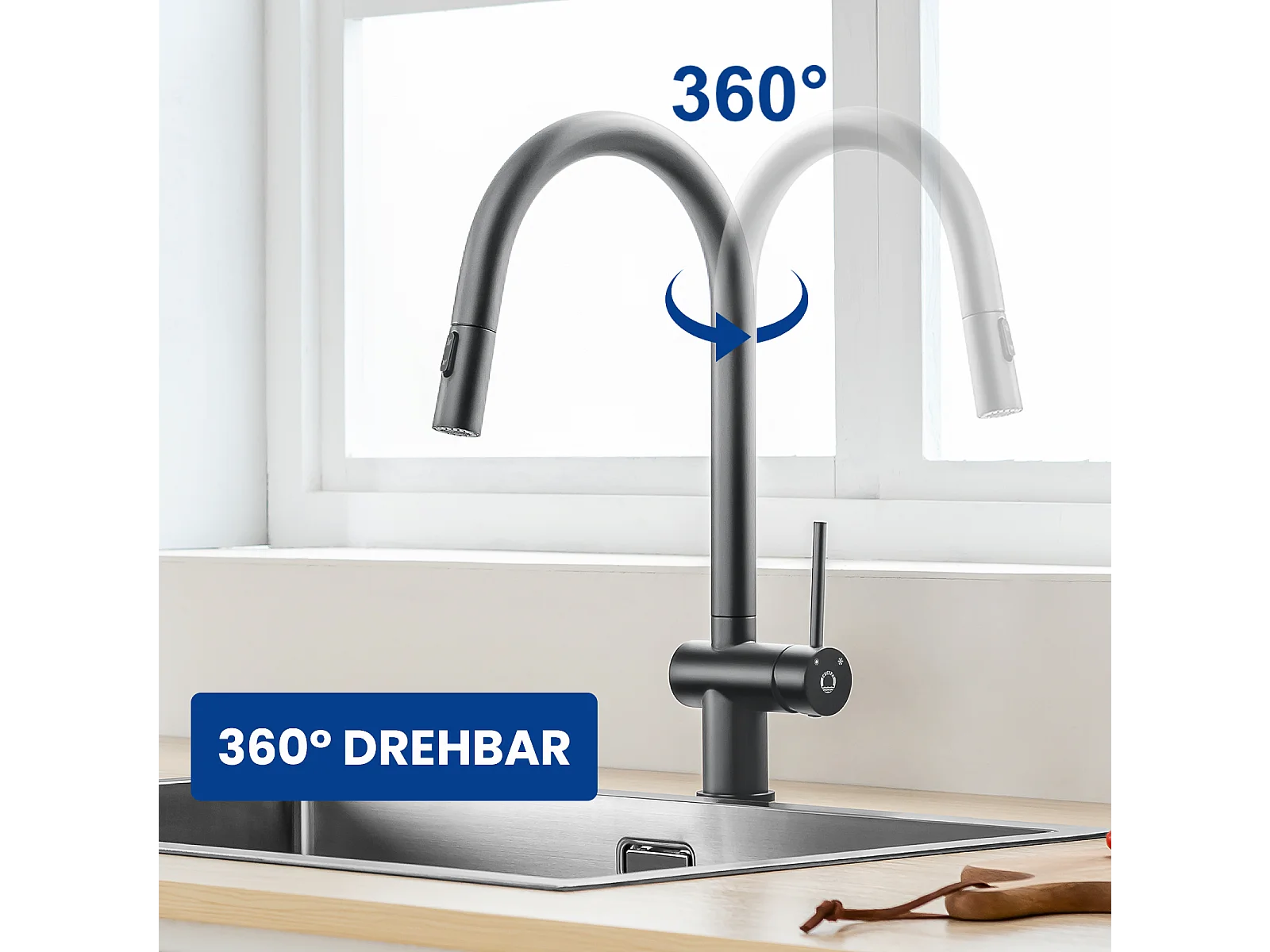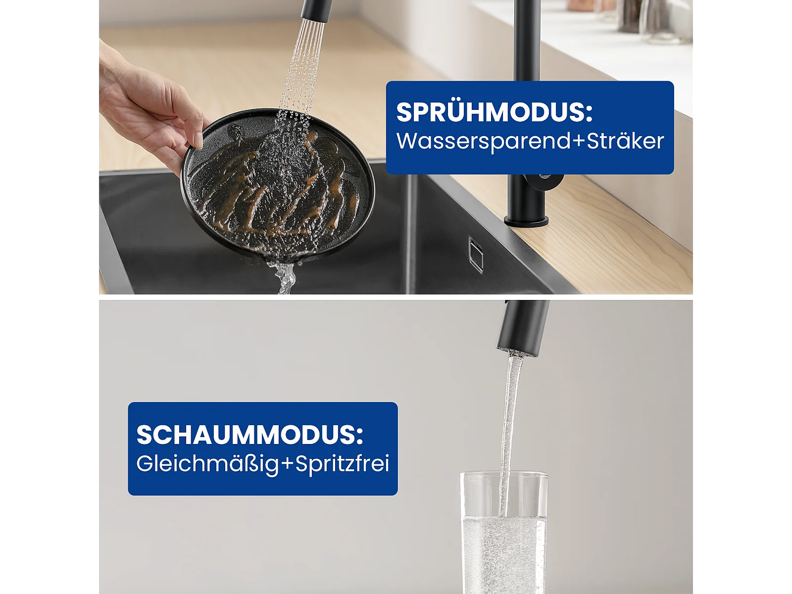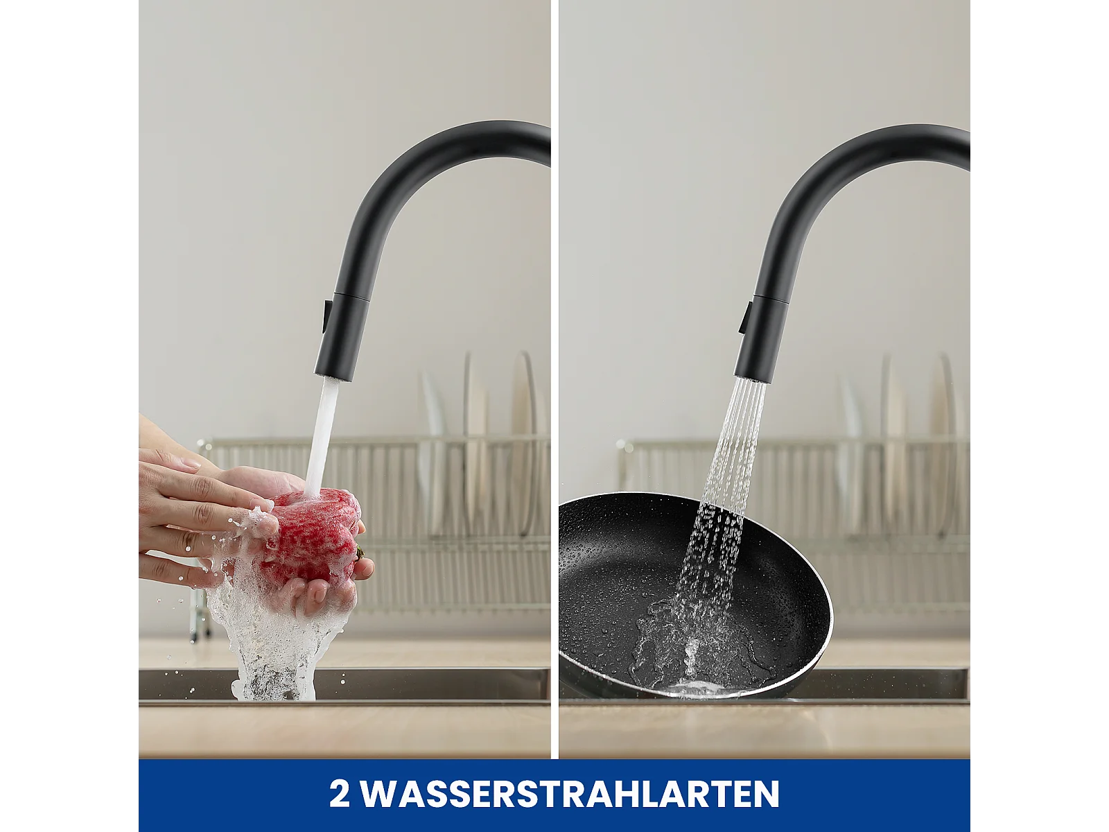 Cecipa max Mitigeur de Cuisine avec Douchette Extractible Robinet de Cuisine avec 2 Types de Jet D'eau Robinet d'évier (Noir),EU Modèle