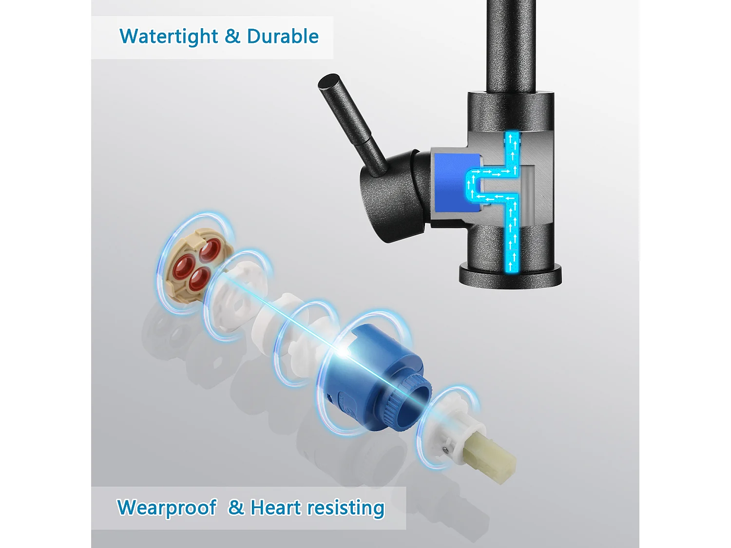 Cecipa max Mitigeur de Cuisine Extractibleavec 2 modes de sortie d'eau, Robinet de Cuisine 360 Rotatif, Noir + Galvanique,EU Modèle