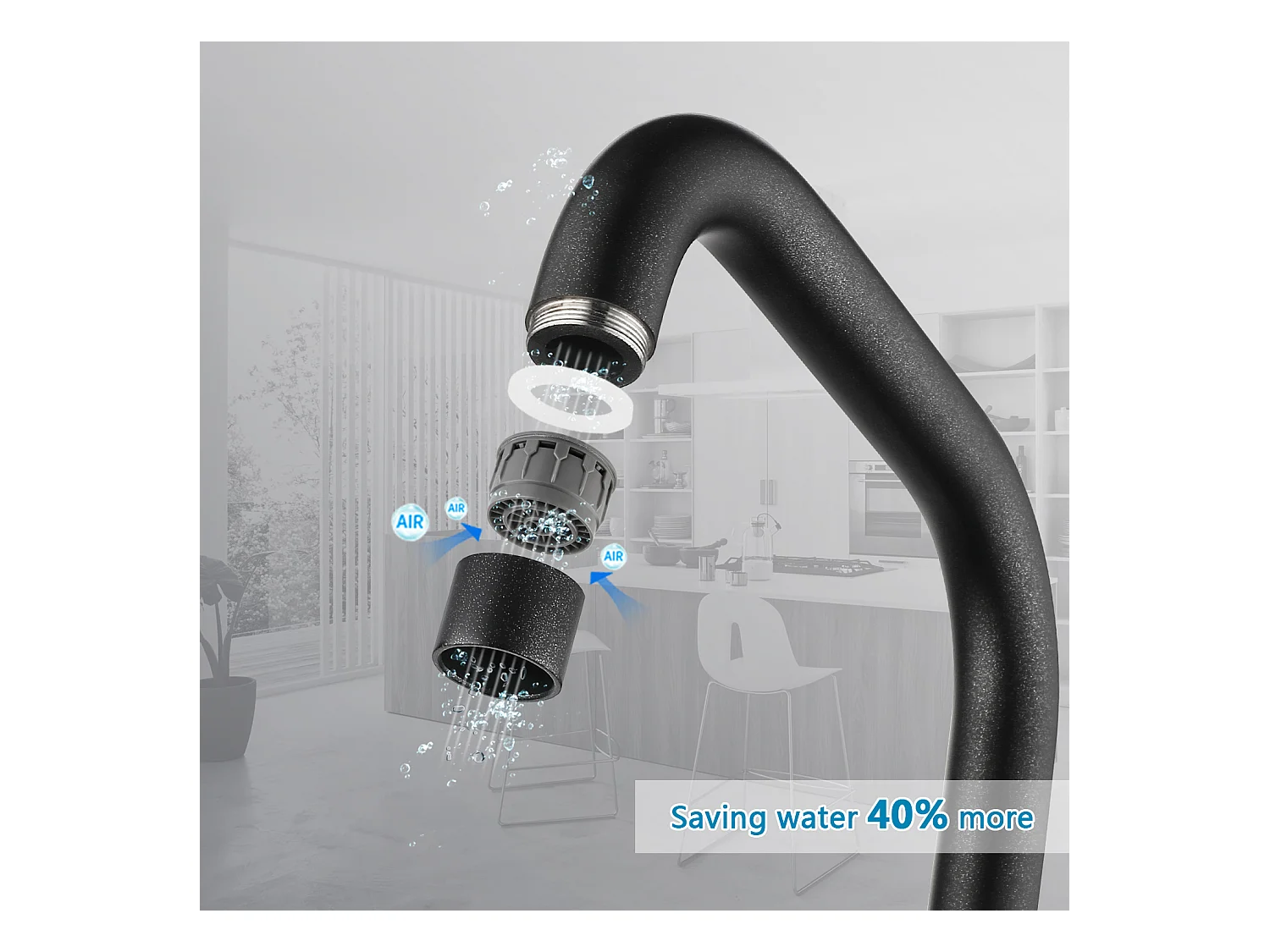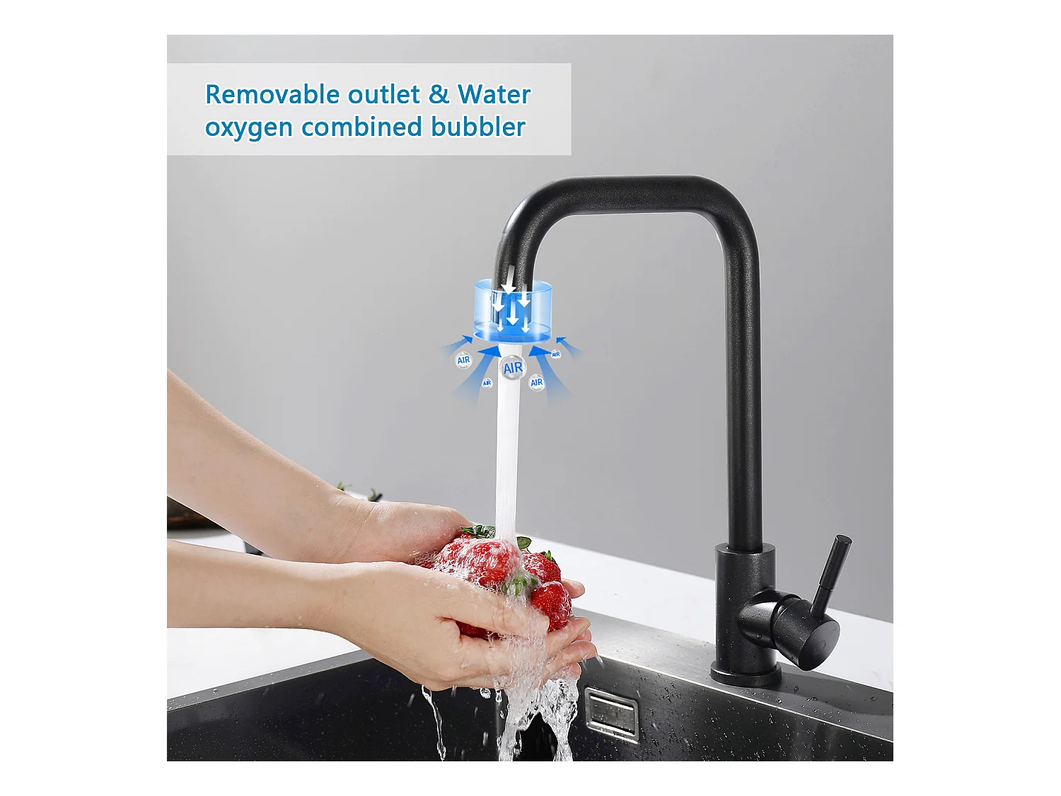Mitigeur Cuisine Pivotant à 360° Elégant Robinet d'évier Bec Haut avec Barboteur Démontable pour Cuisine, Noir