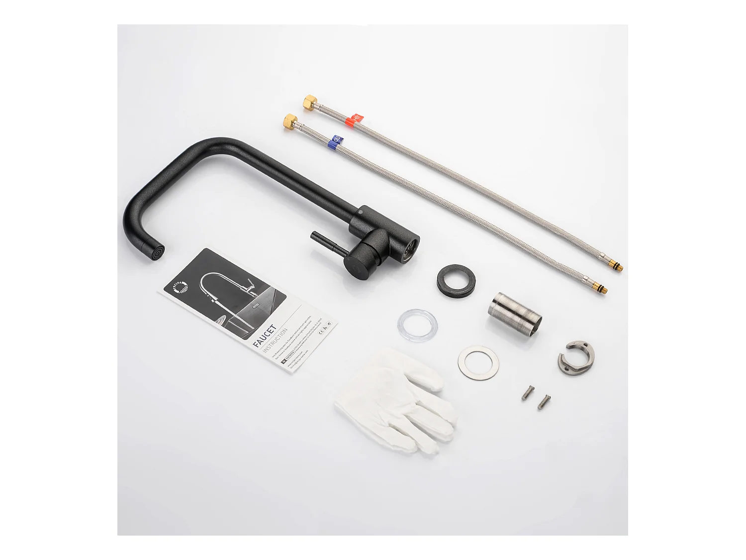 AuraLum Max 2pcs Noir Robinet Cuisine en Laiton Rotatif à 360° Mitigeur Évier Monotrou à Eau Chaude et Froide Convient pour Evier Cuisine,EU Modèle