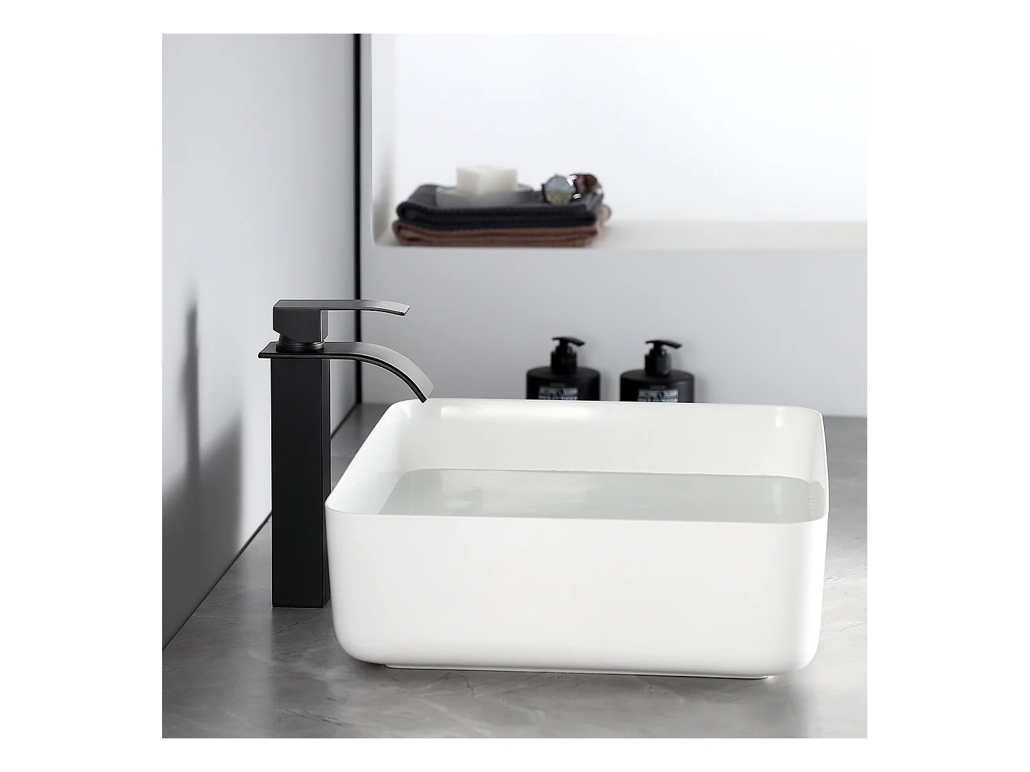 Cecipa max Mitigeur de lavabo en Cascade Noir et vasque robinet lavabo Acier inoxydable Robinet vasque Carré Haut Bec,EU Modèle