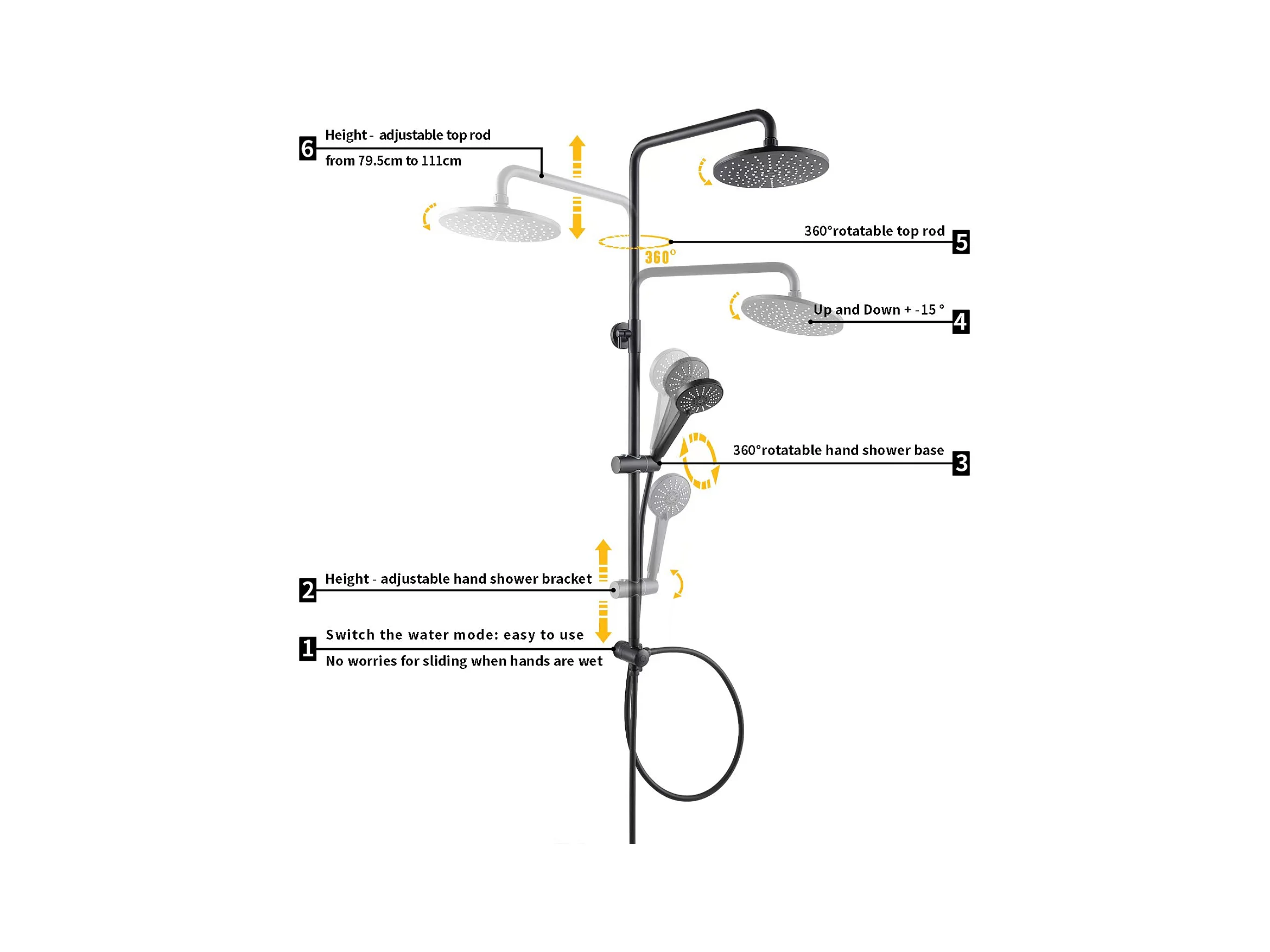 Colonne de douche sans mitigeur, Cecipa max L Pomme 220mm+Douchette 2 jets, Noir,EU Modèle