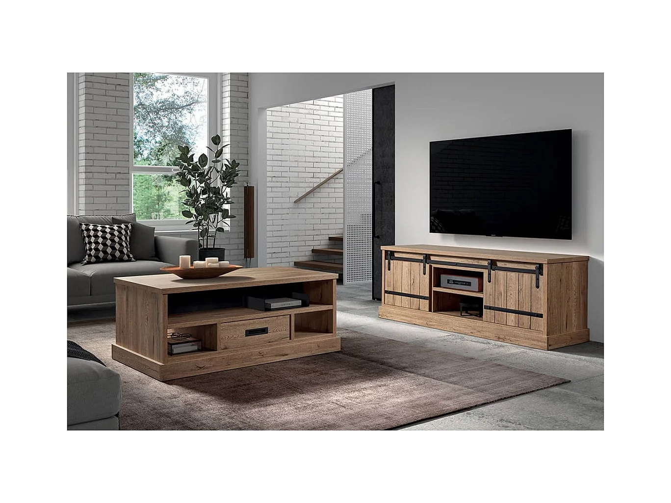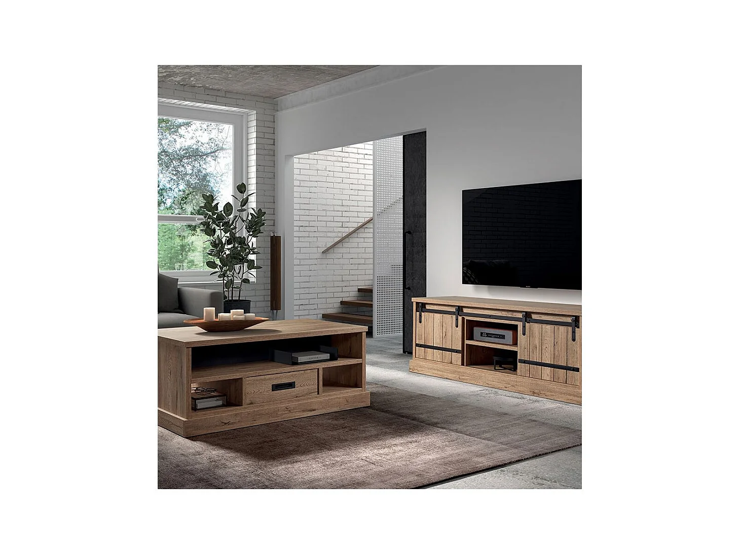 CEDRA - Ensemble Salon Industriel Meuble TV + Table Basse