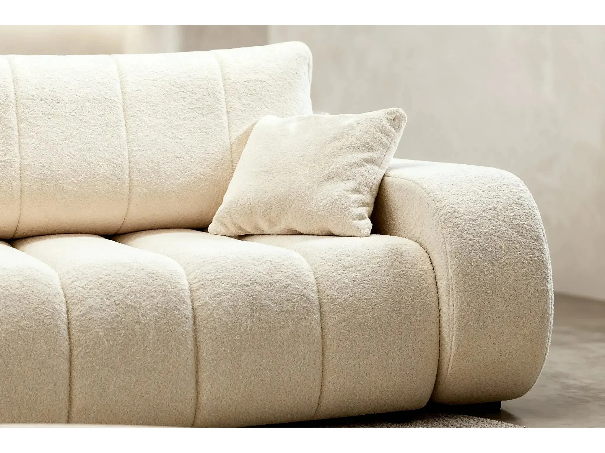 CELESTE - Canapé droit convertible tissu bouclette 3 places - Beige