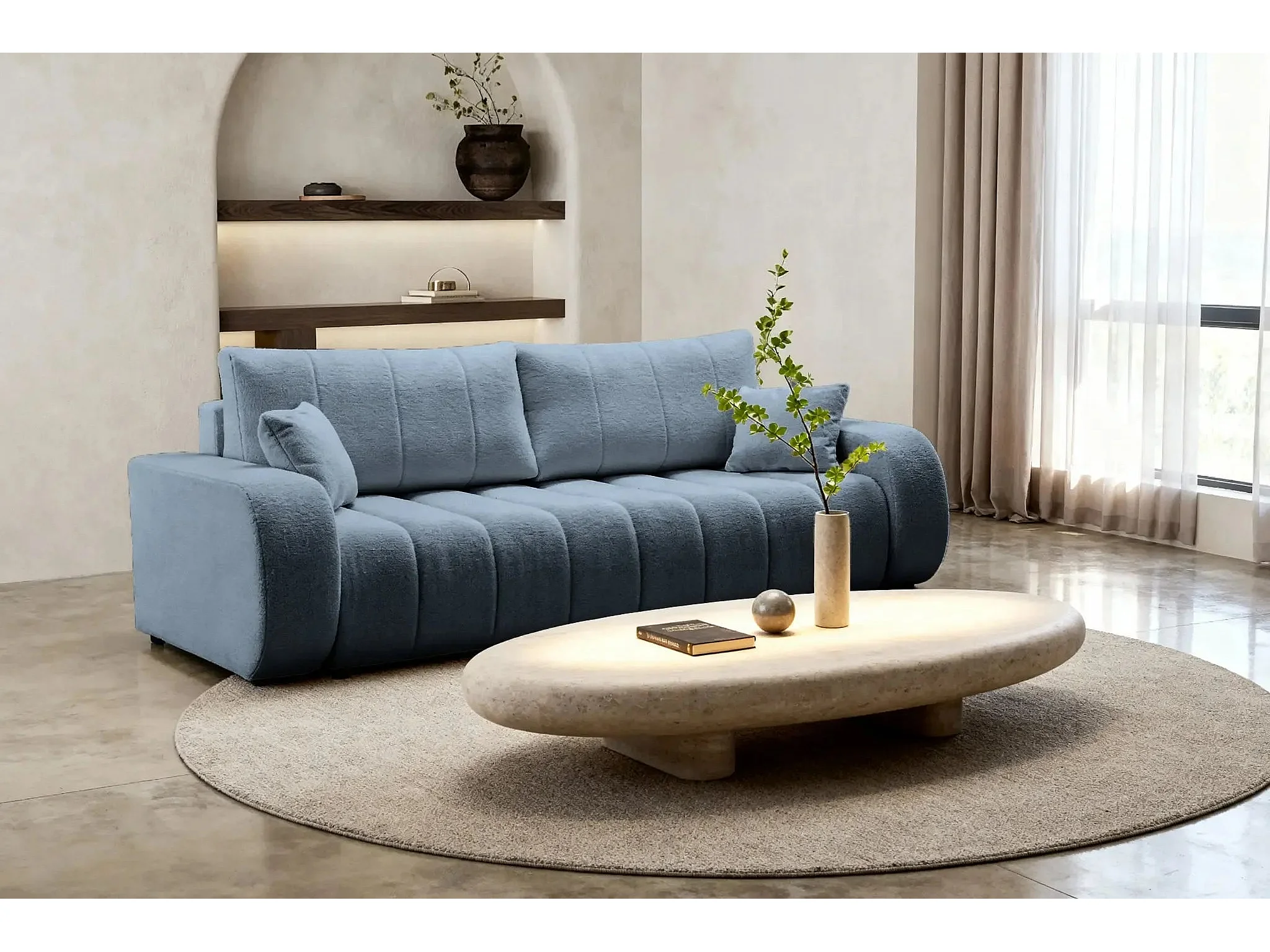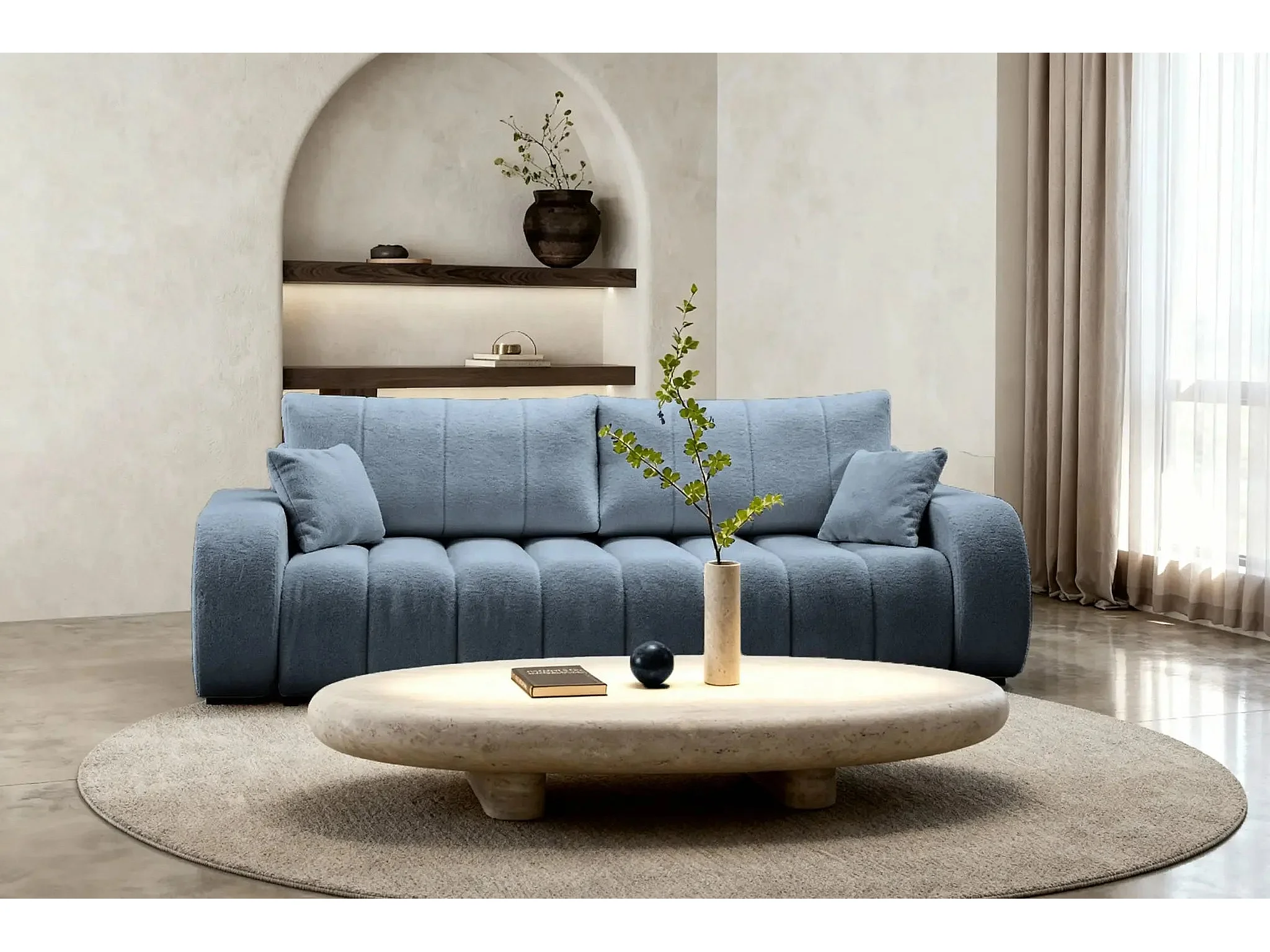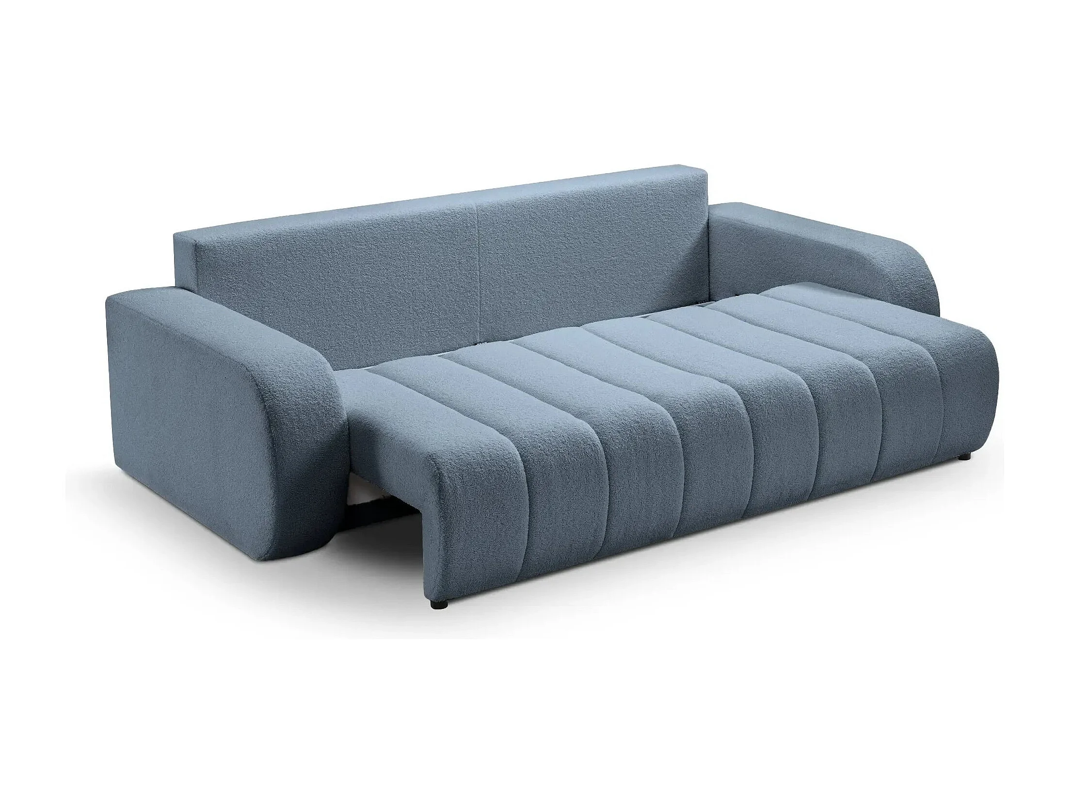 CELESTE - Canapé droit convertible tissu bouclette - Bleu