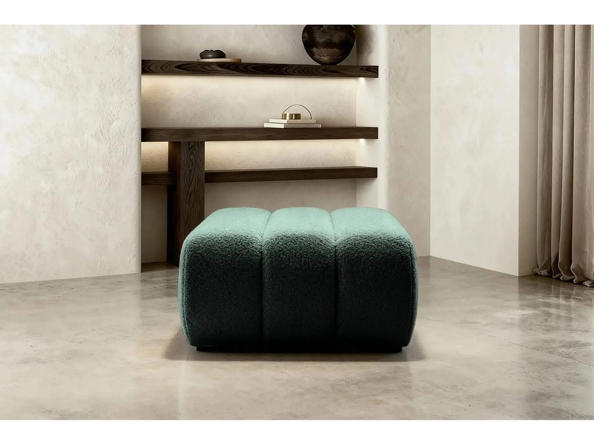 CELESTE - Pouf en tissu bouclette Vert 75x82x41