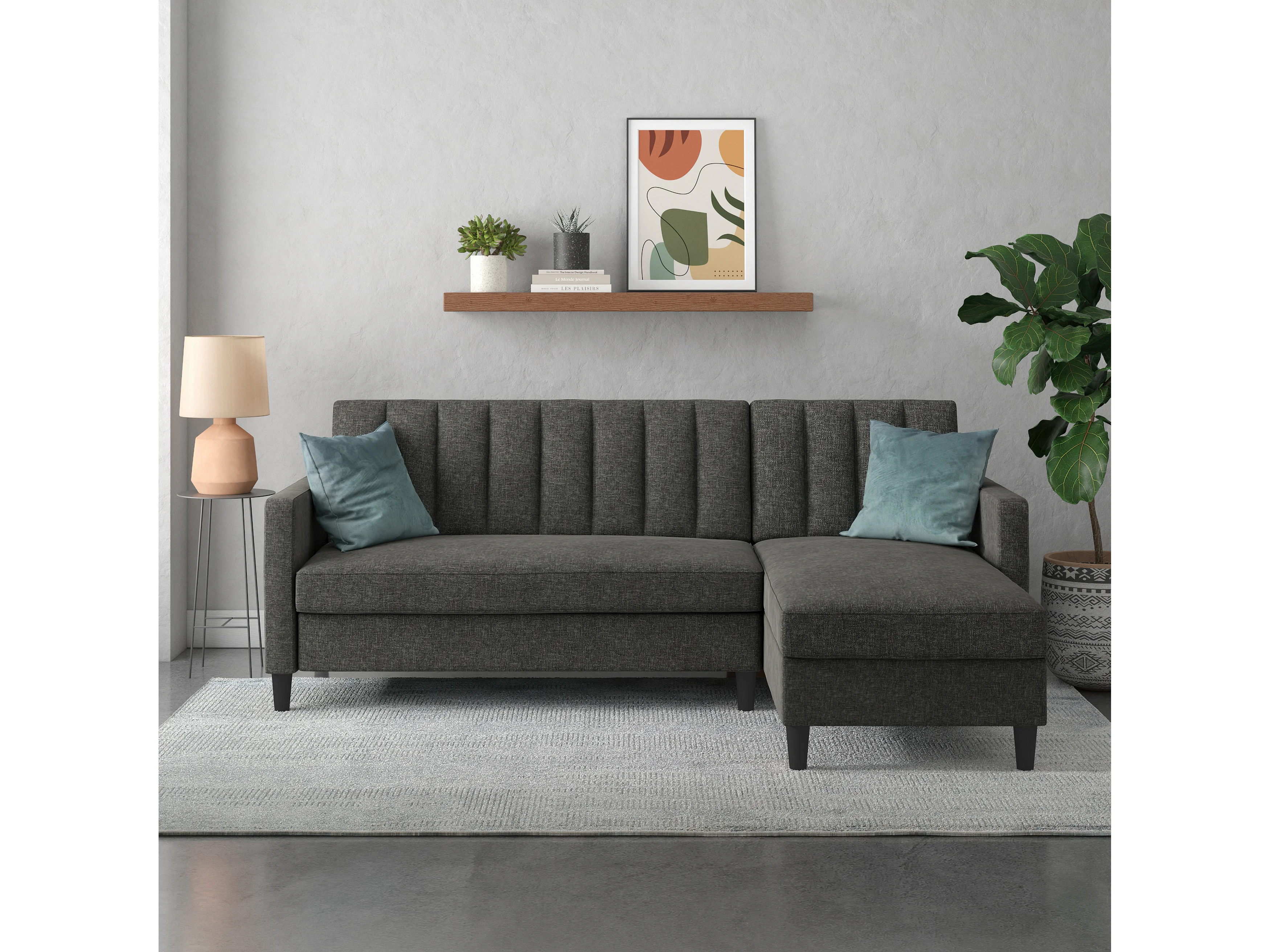 Celine | Canapé convertible 3 places avec méridienne en lin anthracite