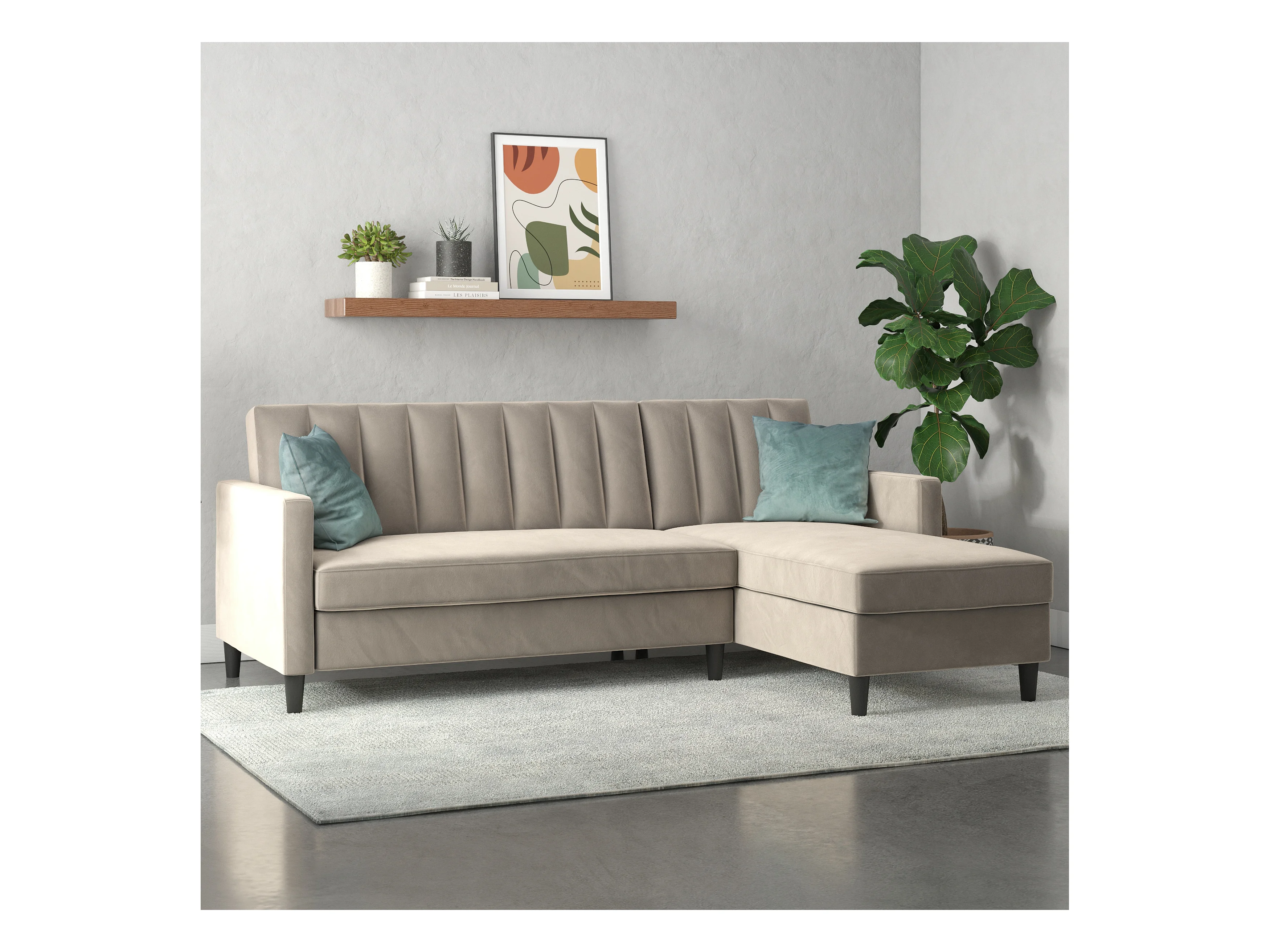 Celine | Canapé convertible 3 places avec méridienne en velours taupe