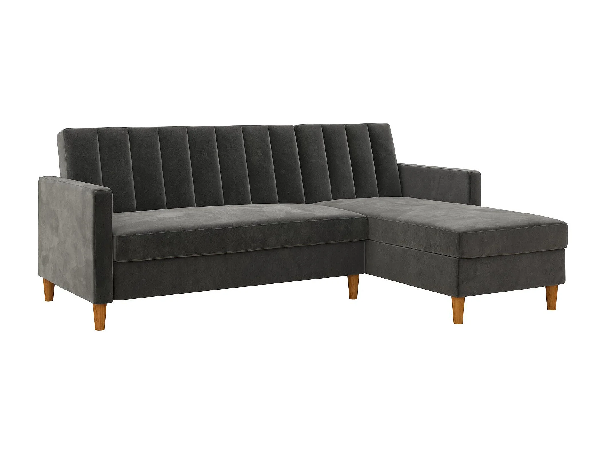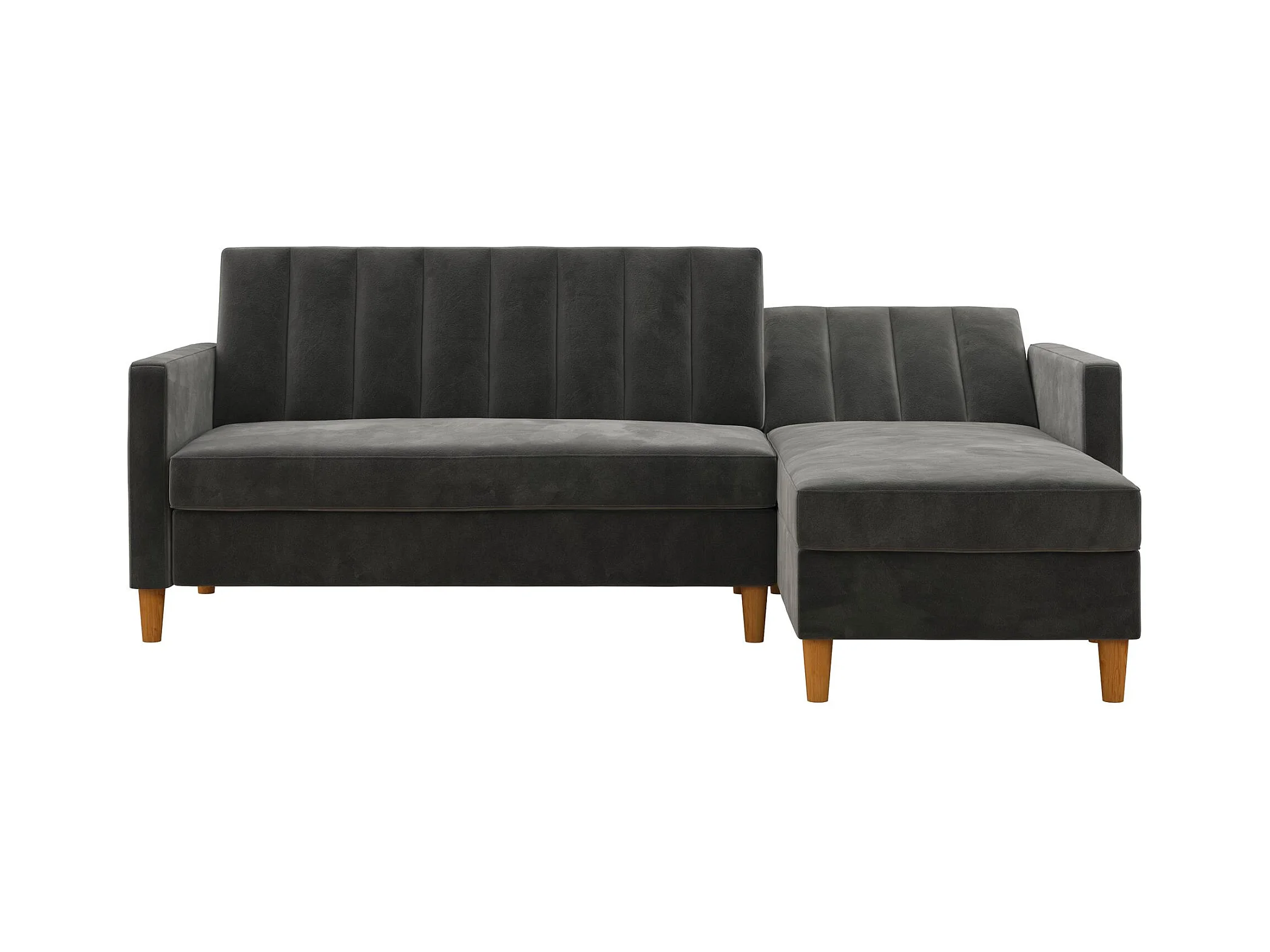 Celine | Canapé lit 3 places avec chaise longue en velours gris foncé
