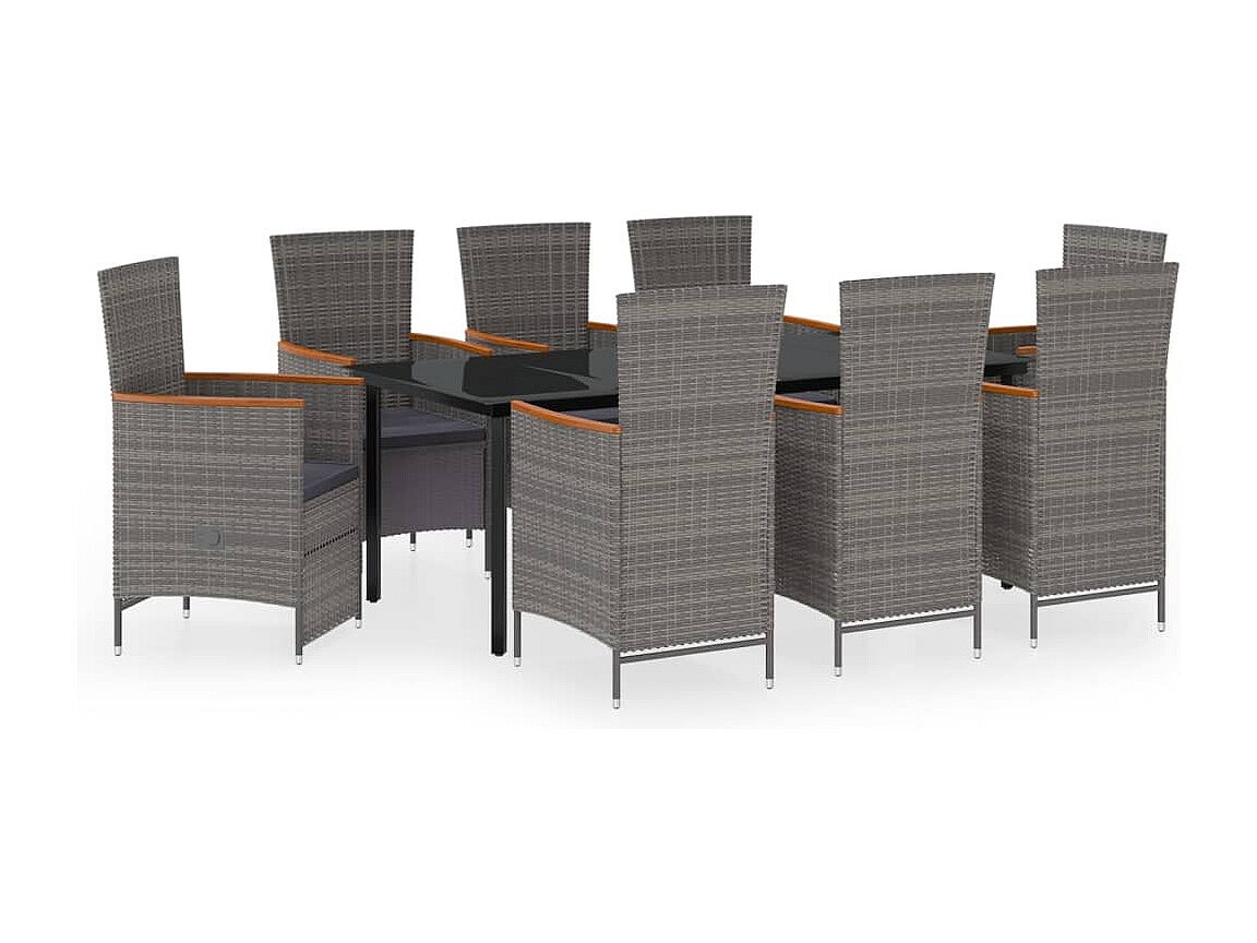 Central Point Ensemble à manger de jardin avec coussins 9 pcs Gris