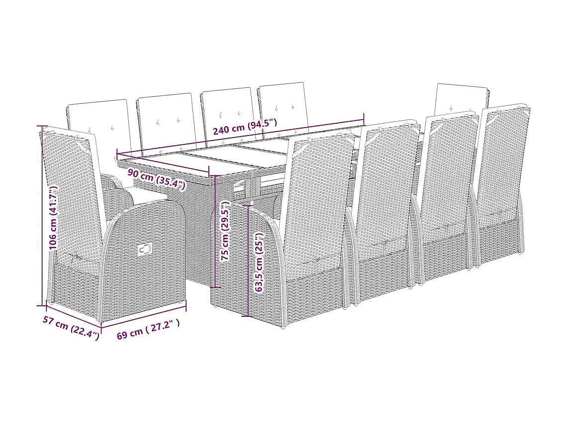 Central Valley Ensemble à manger de jardin 11pcs avec coussins gris poly rotin