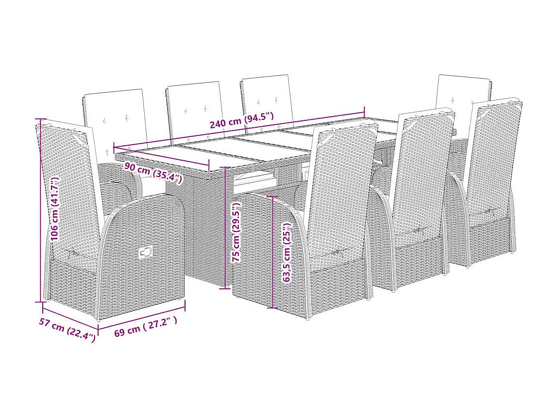 Central Valley Ensemble à manger de jardin 9 pcs coussins gris résine tressée