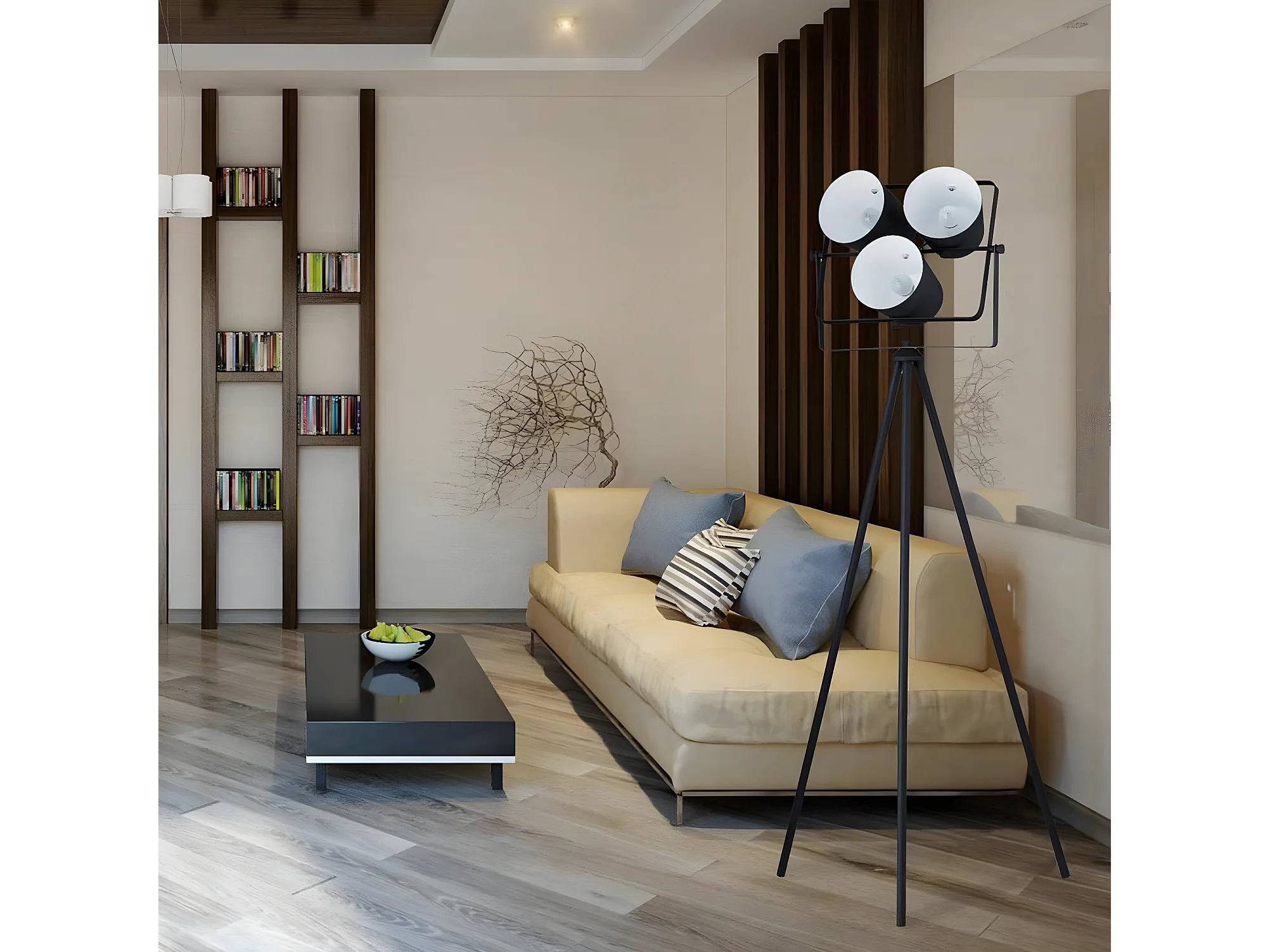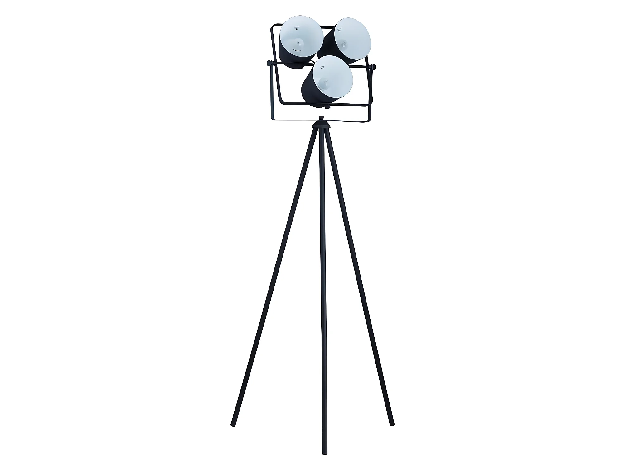 CERBERE - Lampadaire Trépied en Métal Noir 3 projecteurs inclinables