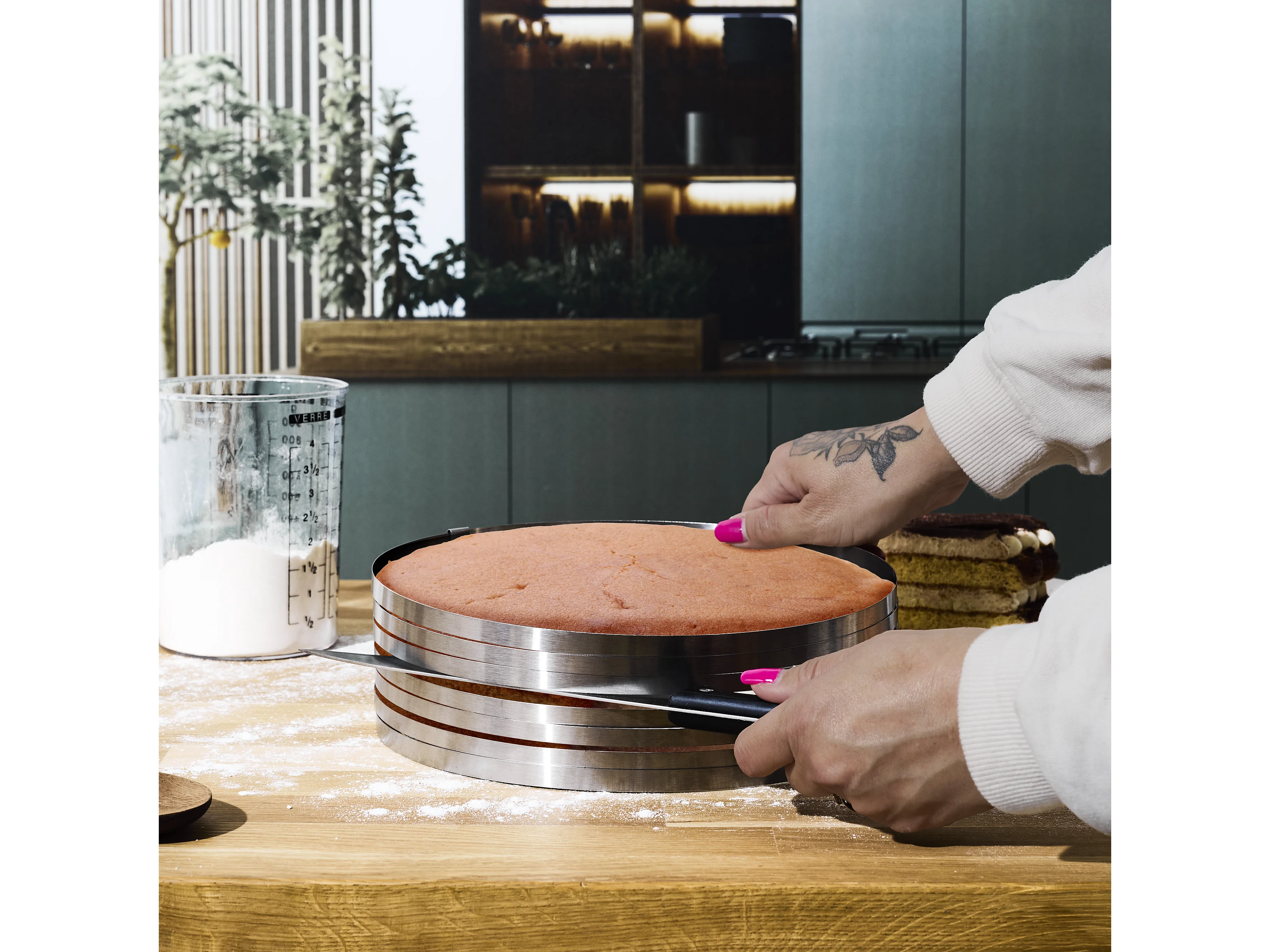 Cercle à Trancher Génoise Réglable M8 Inox 6 Fentes Pré-découpées Diamètre 24-30cm