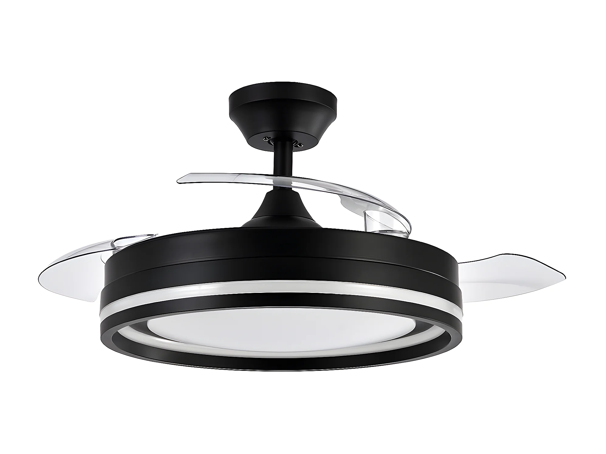 Ventilateur LED LIVORNO DC noir intégré avec CCT et minuterie FABRILAMP