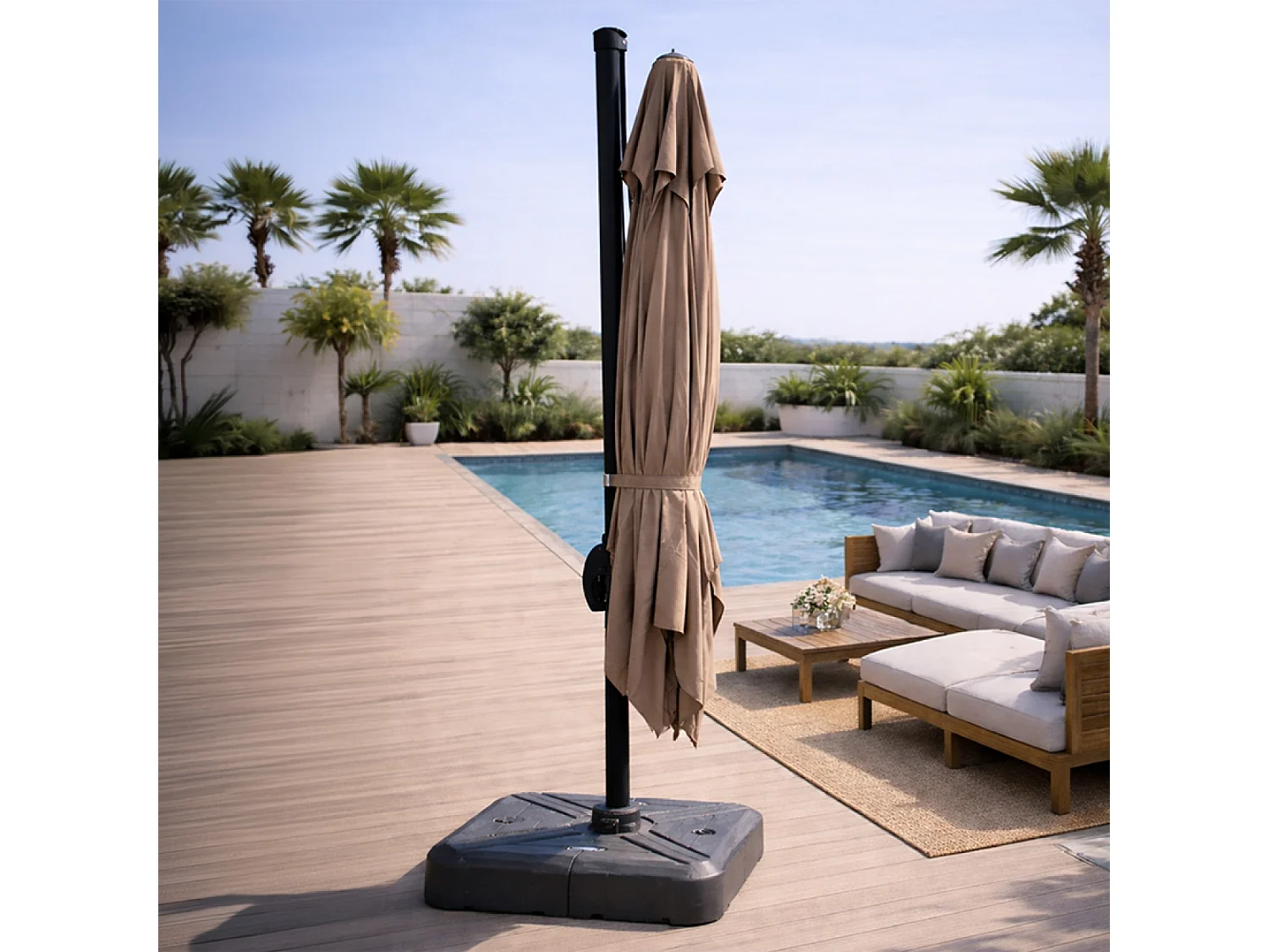 Parasol rectangulaire 3x4m déporté rotatif taupe en aluminium CESARE
