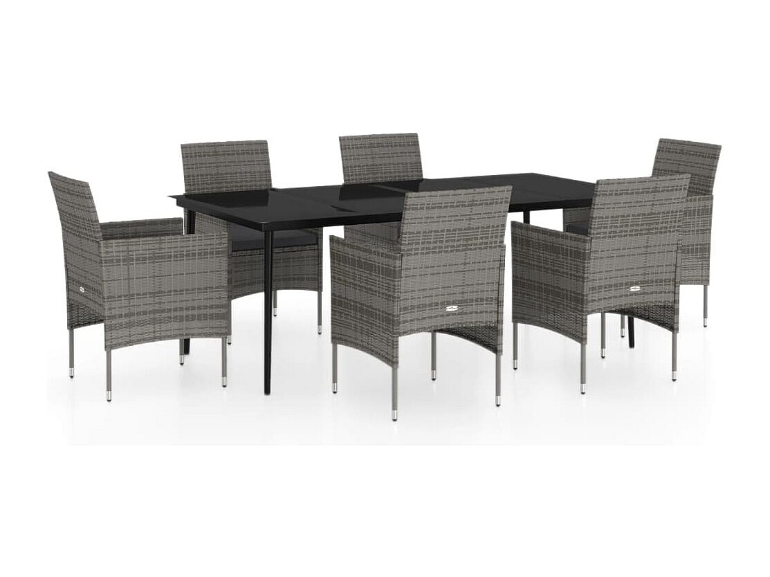 Cesarino Ensemble à manger de jardin coussins 7pcs Gris et noir