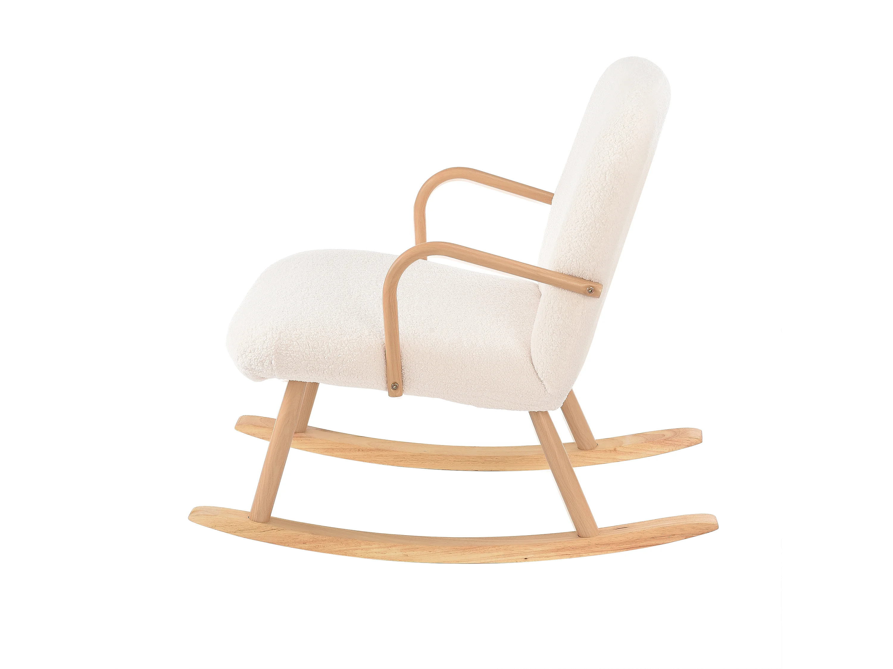 Fauteuil à bascule en velours Teddy Blanc crème, chaise à bascule avec accoudoirs