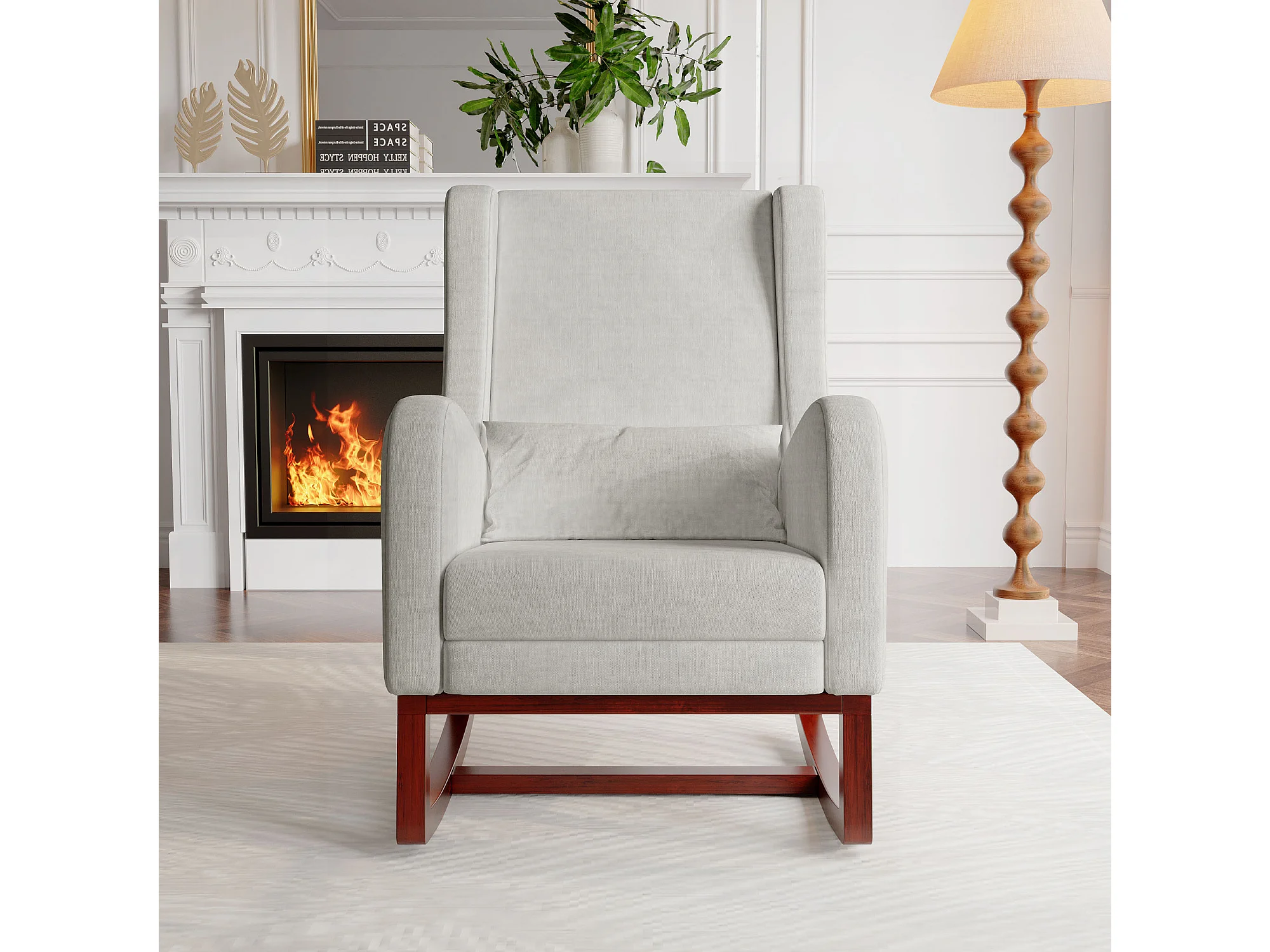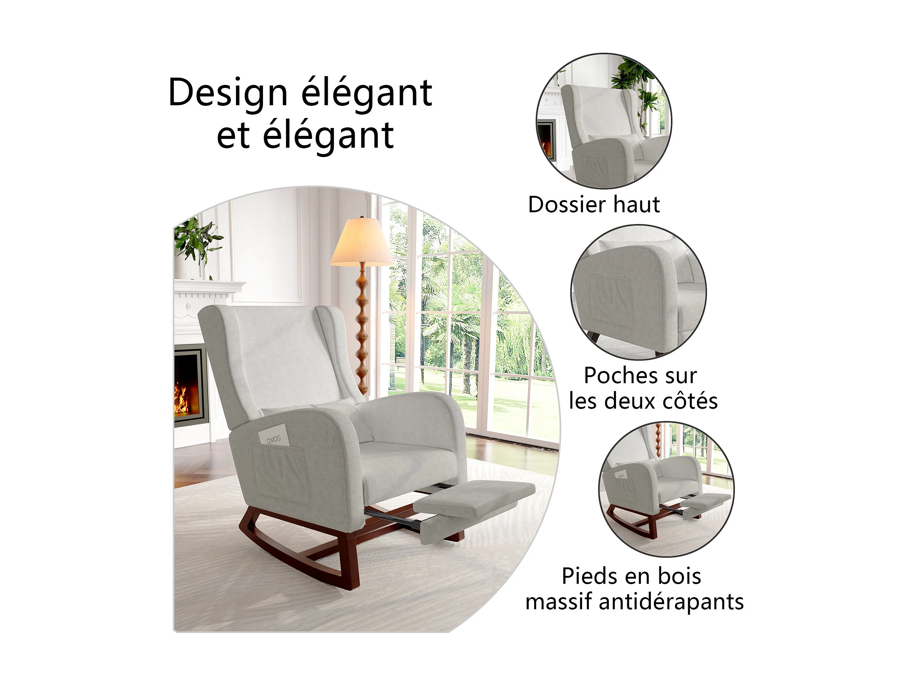 Chaise à bascule - avec appuie-pieds - Chaise à bascule avec coussin lombaire et poches latérales - gris - Tissu velours glacé