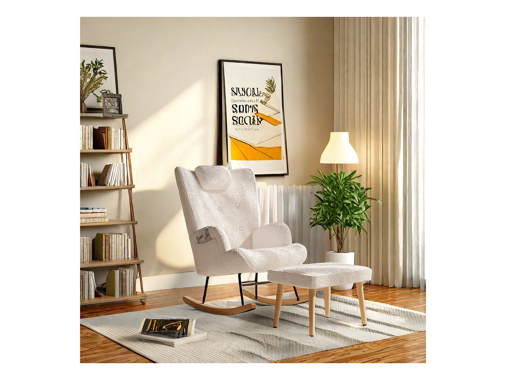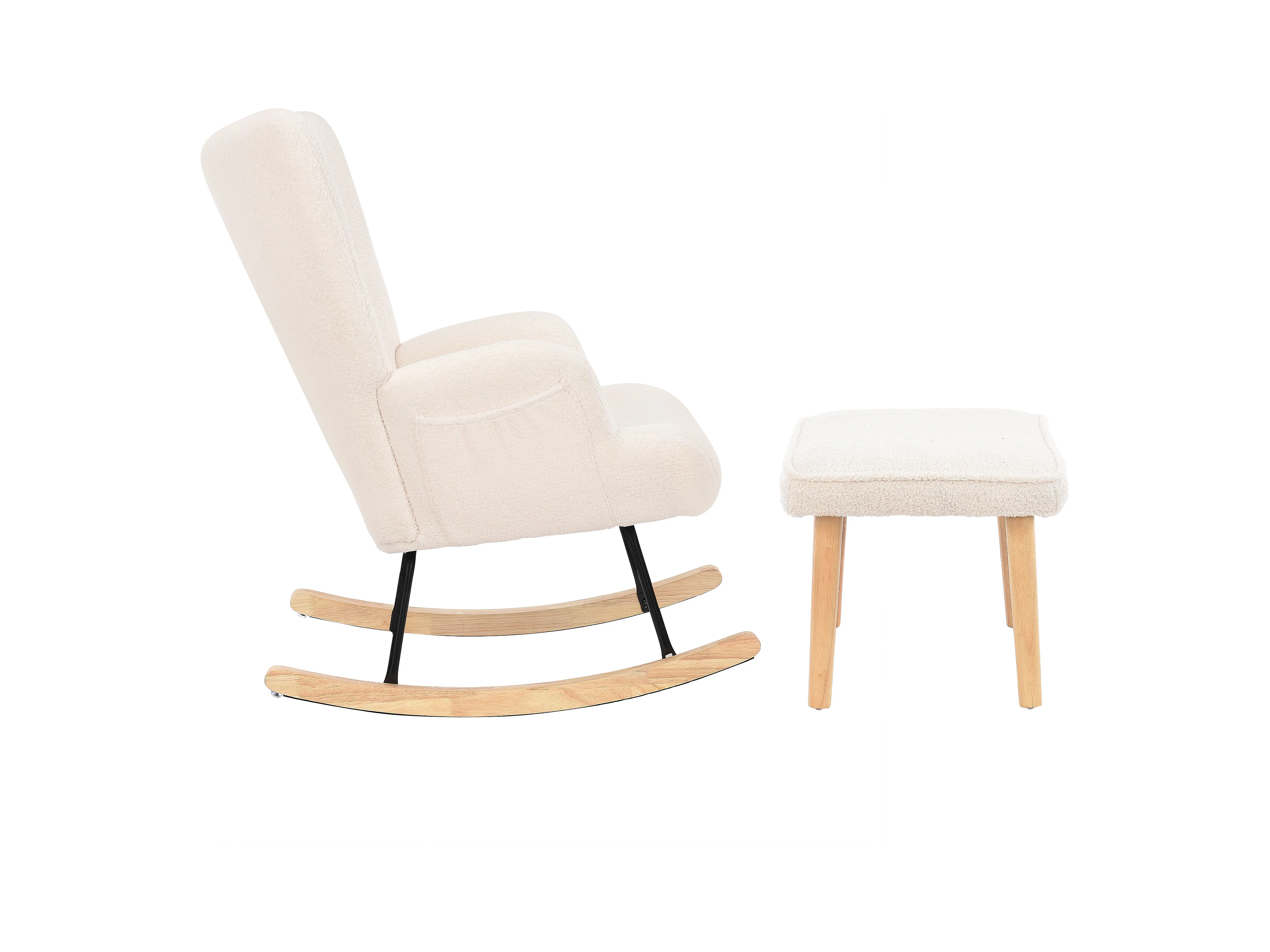 Chaise à bascule avec repose-pied,fauteuil de relaxation,avec poches,Blanc
