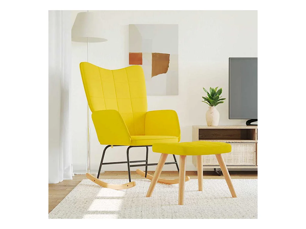 Fauteuil à bascule avec pieds en bois et tabouret Jaune Velours BE7220